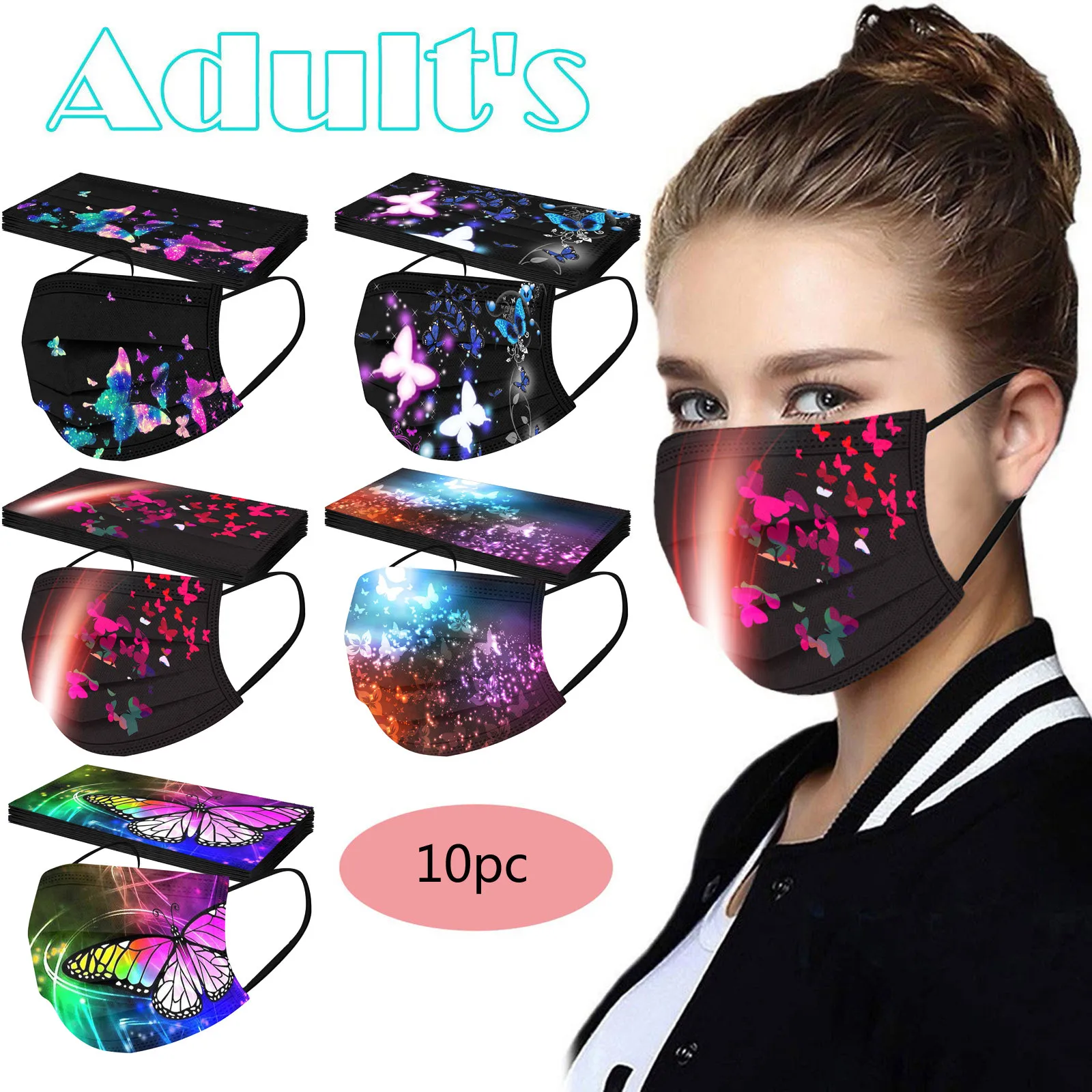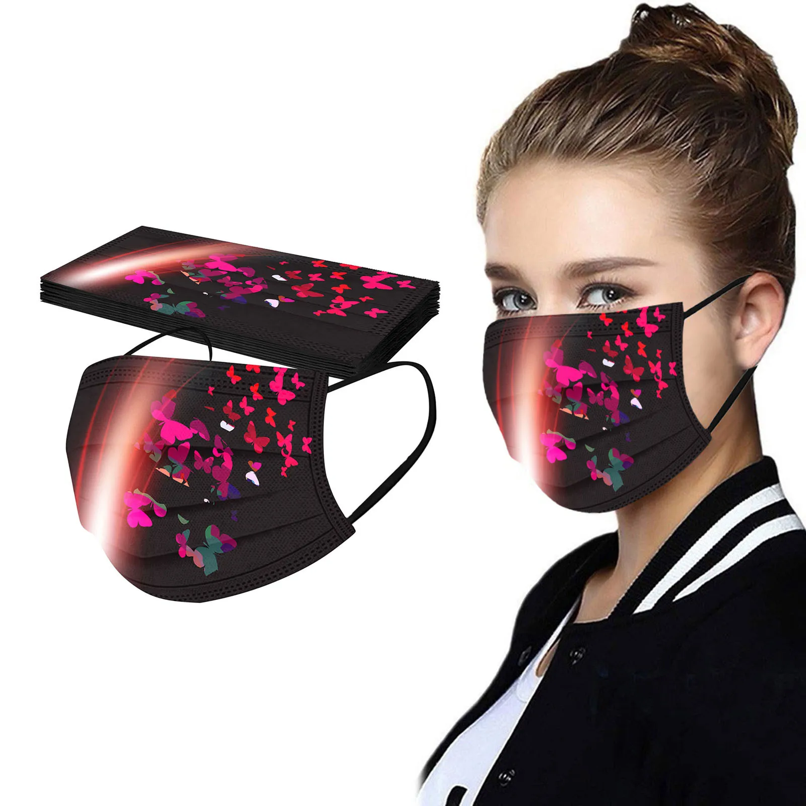 Маска одноразовая с принтом бабочки для взрослых, модная маска для лица, 1050 шт.