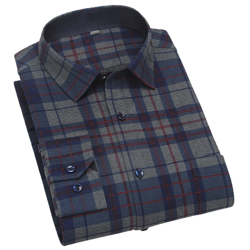 Мужская теплая рубашка в клетку, с длинным рукавом