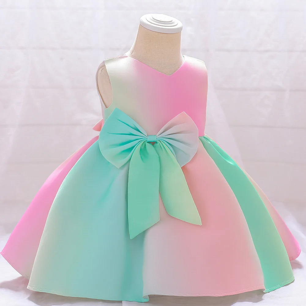 Платье для маленьких девочек, детские платья, элегантное платье принцессы с бантом, кружевное приталенное платье для вечеринки, платье в виде полумесяца, платье для девочек на день рождения
