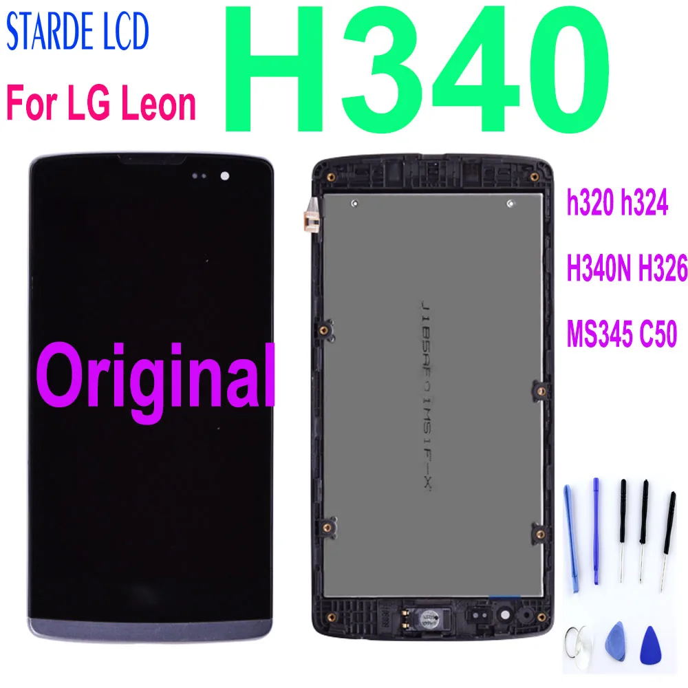 Оригинальный Для LG Leon H340 h320 h324 H340N H326 MS345 C50 ЖК-дисплей Дисплей кодирующий преобразователь сенсорного экрана в сборе с рамкой