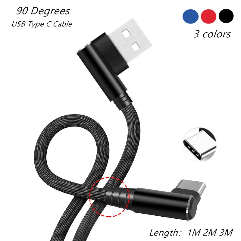 3 вида цветов 1 м 2 м 3 м 90 градусов USB Type C кабель для Samsung Galaxy S20 S10 9 Plus Xiaomi Mi 9 8 Huawei P20 P30 P40 IPhone 11 12 Pro