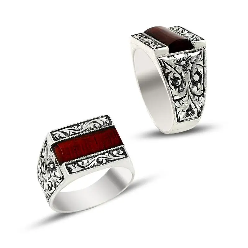 Прямоугольное мужское серебряное кольцо с османским мотивом, Сделан...