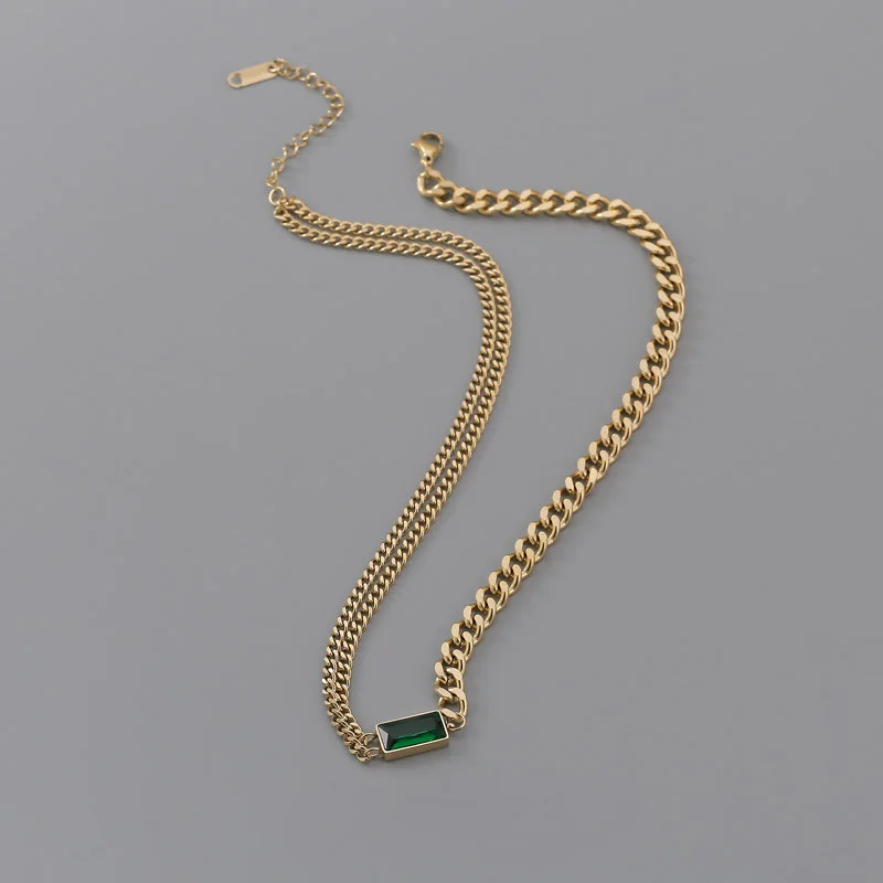 Цепочка-чокер женская, креативная Асимметричная кубинская цепь из нержавеющей стали 18 К с золотым покрытием и изумрудом