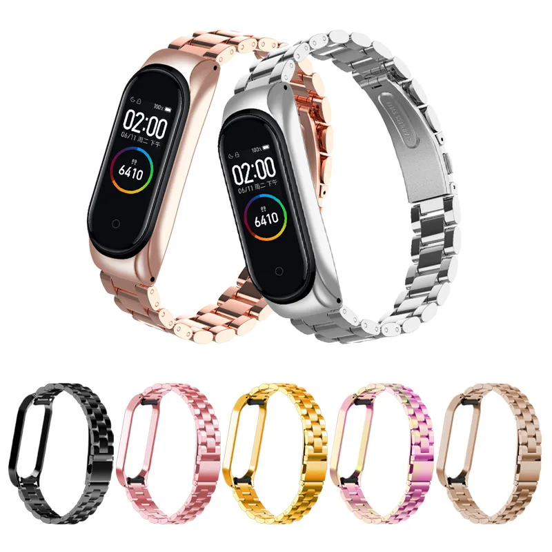 Металлический ремешок для Xiaomi Mi Band 6 5 4 3 NFC, розовое золото, серебро, нержавеющая сталь, ремешок для часов Miband 5 6, сменный ремешок для браслета Mi4