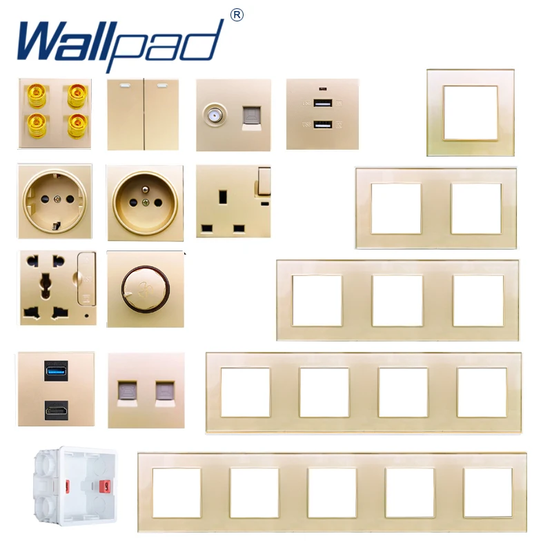 DIY Шампанское Золотая Розетка Бесплатная комбинация Wallpad UK EU розетка USB TV Аудио розетка для передачи данных