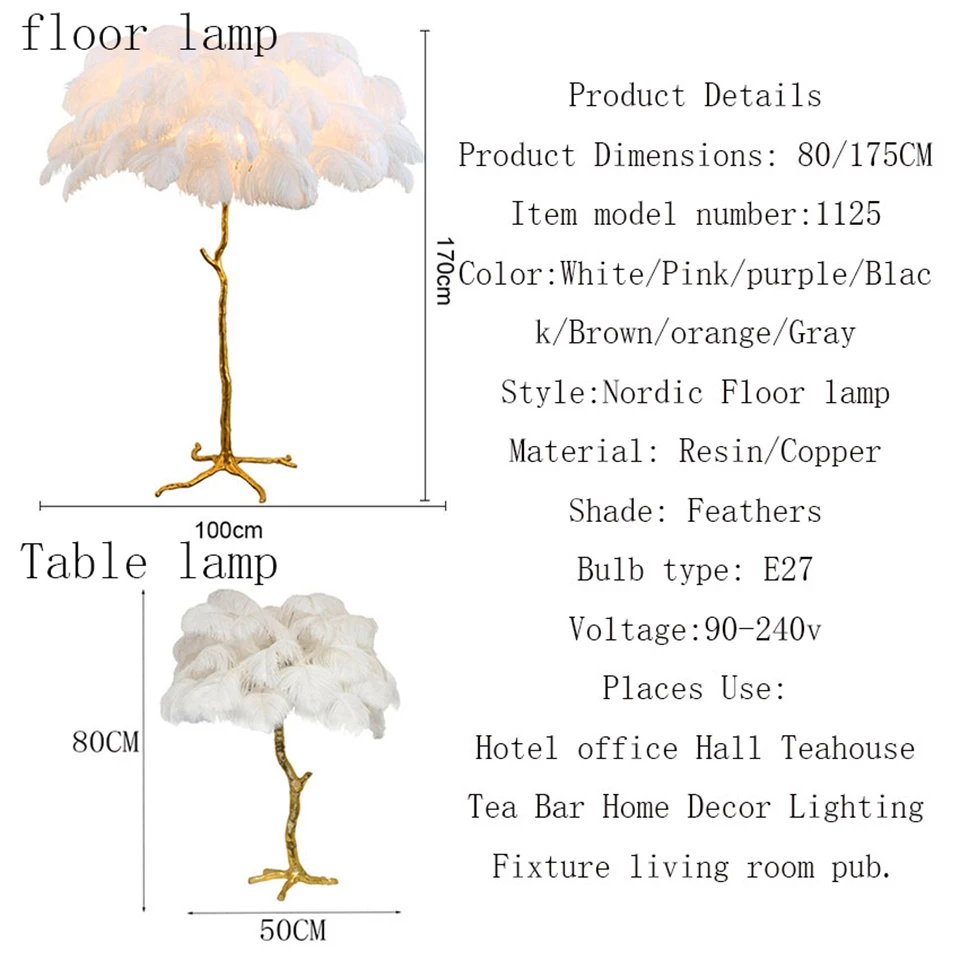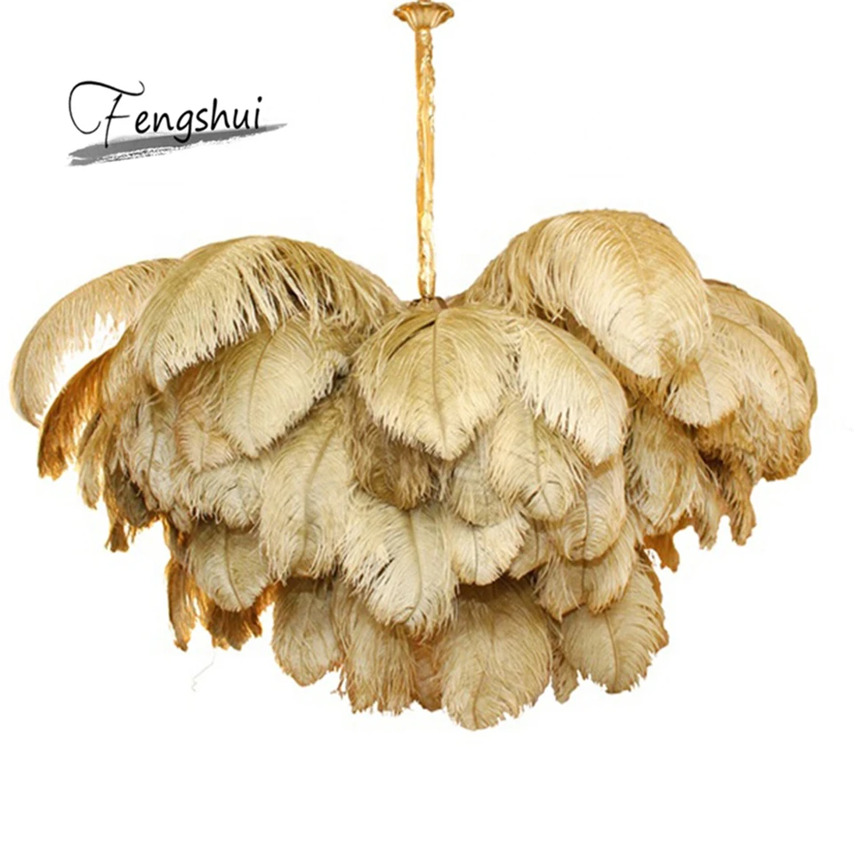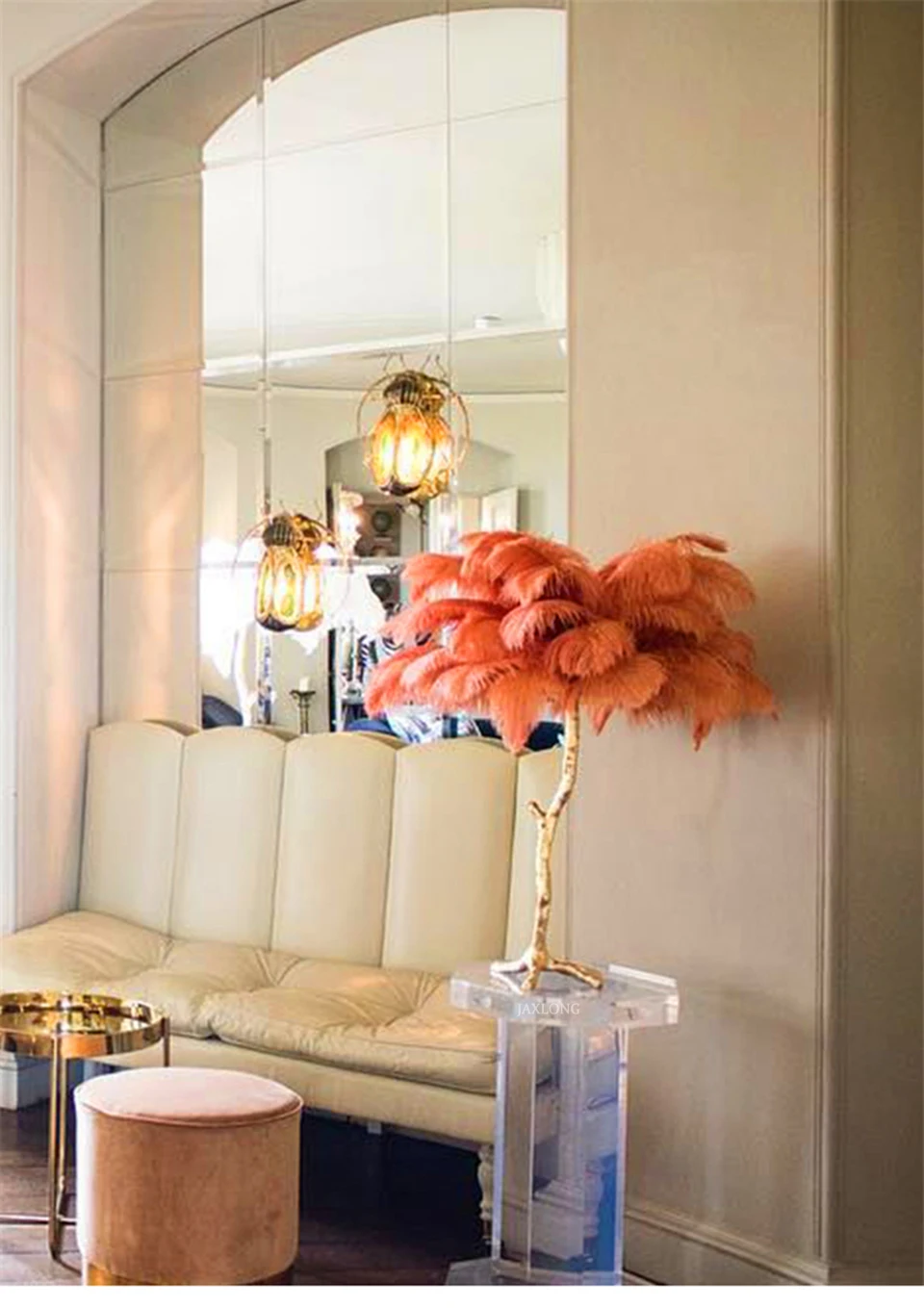 Современная роскошная Напольная Лампа из красного страусиного пера, золотая, медная, латунная, полимерная, Скандинавская лампа, вилла, Tripot гостиничный декоративный светильник