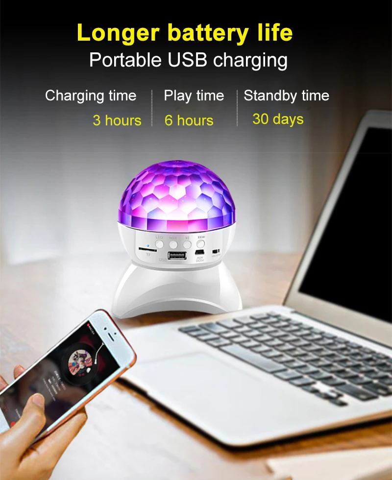 Сцсветильник светодиодный дискошар, беспроводной прожектор с музыкальными колонками, USB-зарядка, совместим с BT, светильник для KTV, вечеринки, свадьбы