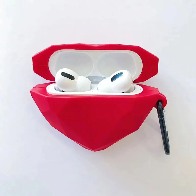 Силиконовый чехол для наушников Airpods Pro, Мягкий защитный чехол с 3D изображением сердца, с крючком