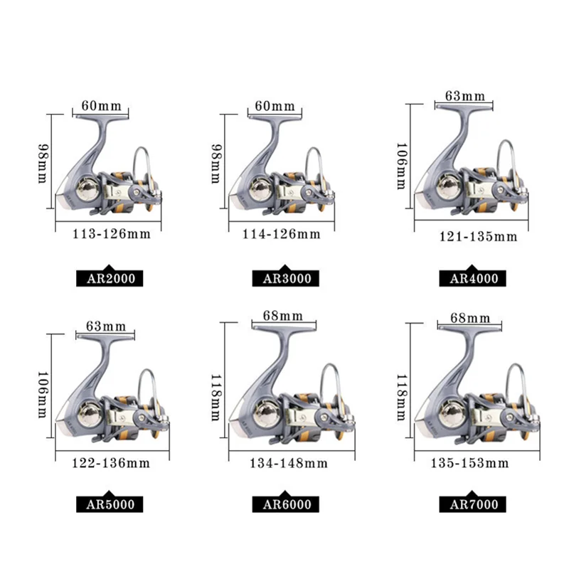 Модель: 2000-6000Скорость передаточное число: 5,2: 1Вес: 241 г, 244 г, 276 г, 282 г, 369 г, 376 гМощность линии:AR2000: 0,20/240 0,25/190AR3000: 0,20/280 0,25/230AR4000: 0,30/160 0,35/120AR5000: 0,30/190 0,35/140AR6000: 0,35/260 0,40/200AR7000: 0,35/300 0,40/240