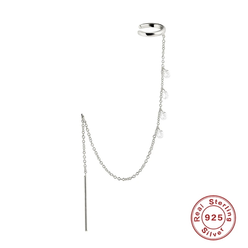 Romad 1 шт. реальные 925 пробы серебро из нержавеющей стали, цепь кисточкой серьги-клипсы не пирсинг корейский стиль ювелирных изделий Earcuff W5
