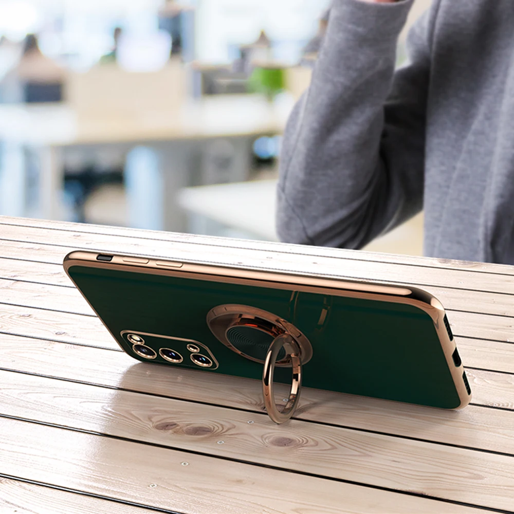 Защитный чехол, мягкий силиконовый для Samsung S20 FE S21 Plus с магнитным кольцом-держателем, подставка для Galaxy S21 S20 Ultra