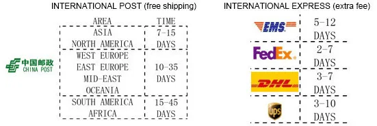 Мы отправим Ваш заказ в течение 1-3 рабочих дней, как только платеж будет полностью проверен. Все поставки имеют номер отслеживания, любой таможенный сбор или налог на импорт находится под ответственностью покупателя.
