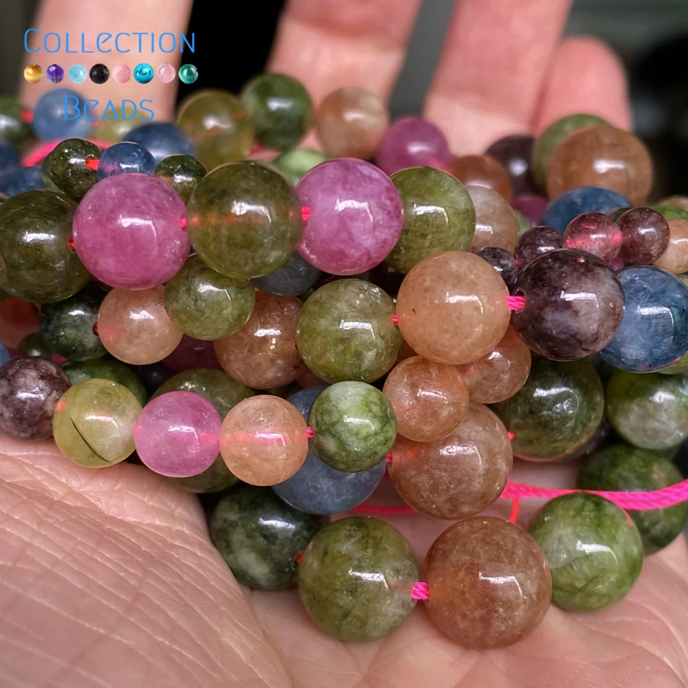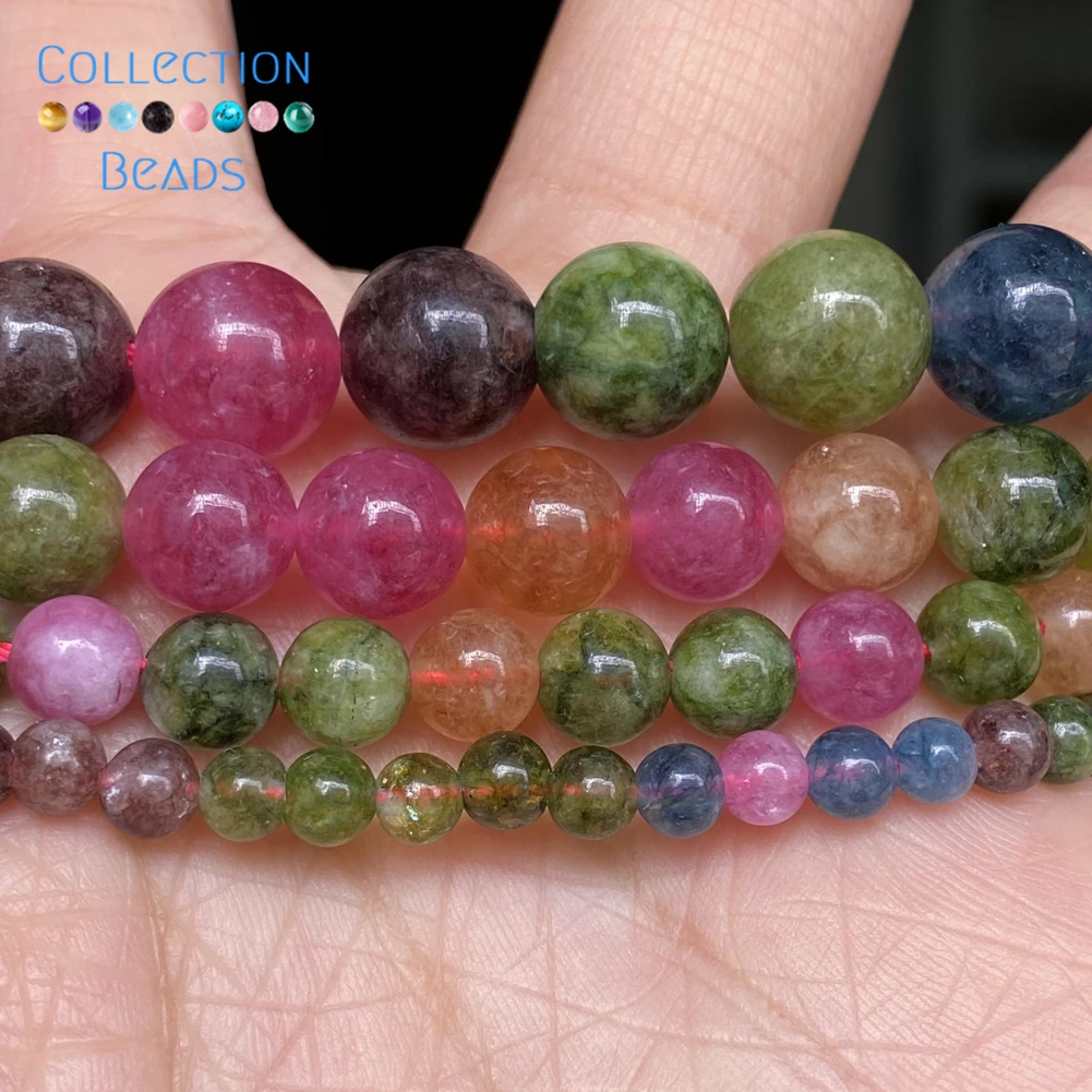 Натуральный камень, красочные турмалиновые бусины, Свободные Круглые бусины для изготовления ювелирных изделий, 4-10 мм, аксессуары для браслетов Diy 15"