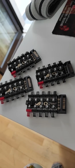 Эй, эта вещь отлично работает. Вы можете подключить один кабель к материнской плате и один источник питания sata. После этого все вентиляторы на концентраторе работают с той же скоростью, но вы можете изменить rpm, если ваша материнская плата поддерживает эту функцию. Скорость измеряется на красном выходном разъеме.