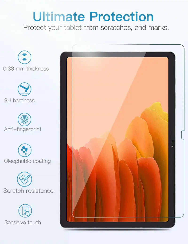 Защитная пленка из закаленного стекла Особенность> Материал: закаленное стекло Толщина: 0,26 мм Твердость: 9H Посылка включает> 1 * защитная пленка из закаленного стекла 1 * Бумага для очистки экрана (сухая) 1 * спиртовая Чистящая бумага (влажная) Совместимые модели> Для планшета Samsung Galaxy Tab A7 (10,4)(2020)(4 аппарат не привязан к оператору сотовой связи Wi-Fi)/SM-T500 SM-T505 SM-T507/10,4"