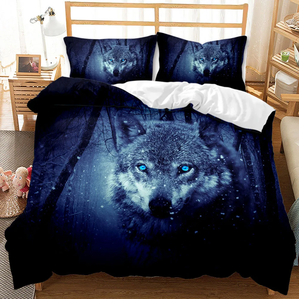 Комплект постельного белья с изображением светящегося волка, двухспальный, удобный, наволочка с животным, для кровати, всесезонный, на заказ