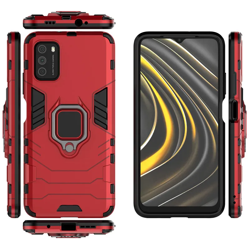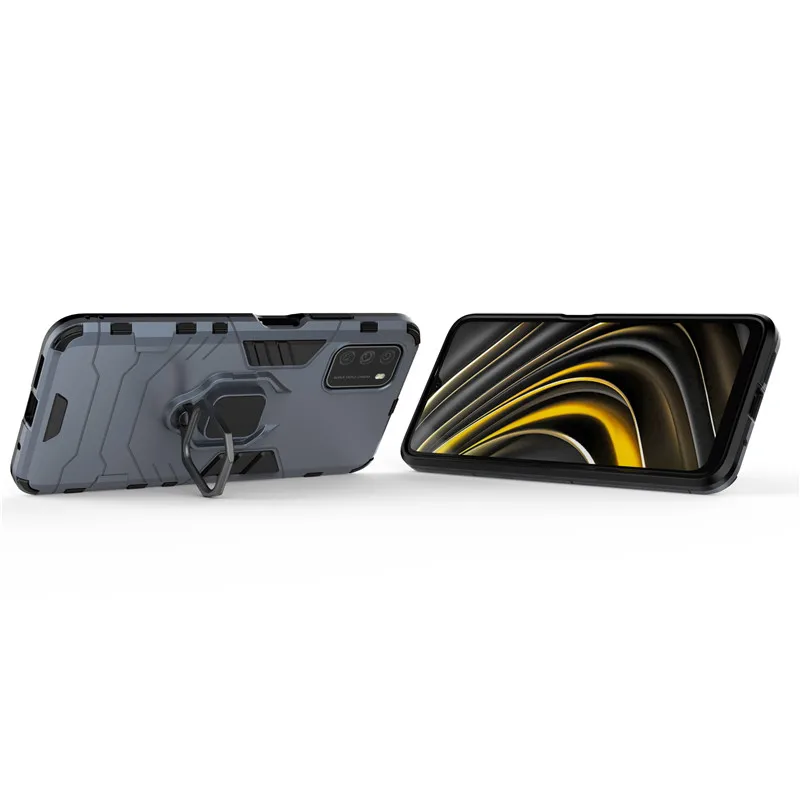 Чехол-держатель с кольцом для Xiaomi Poco M3, Чехол X3 NFC F2 Pro Pocophone F1, бронированный чехол, задний бампер для телефона Xiaomi Poco M3 Funda