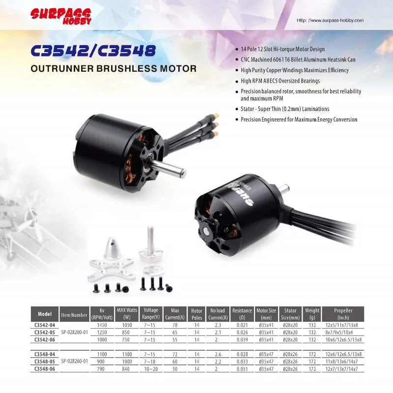 Двигатель бесщеточный SURPASS HOBBY C3530 C3536 C3542 C3548, 14-пол...