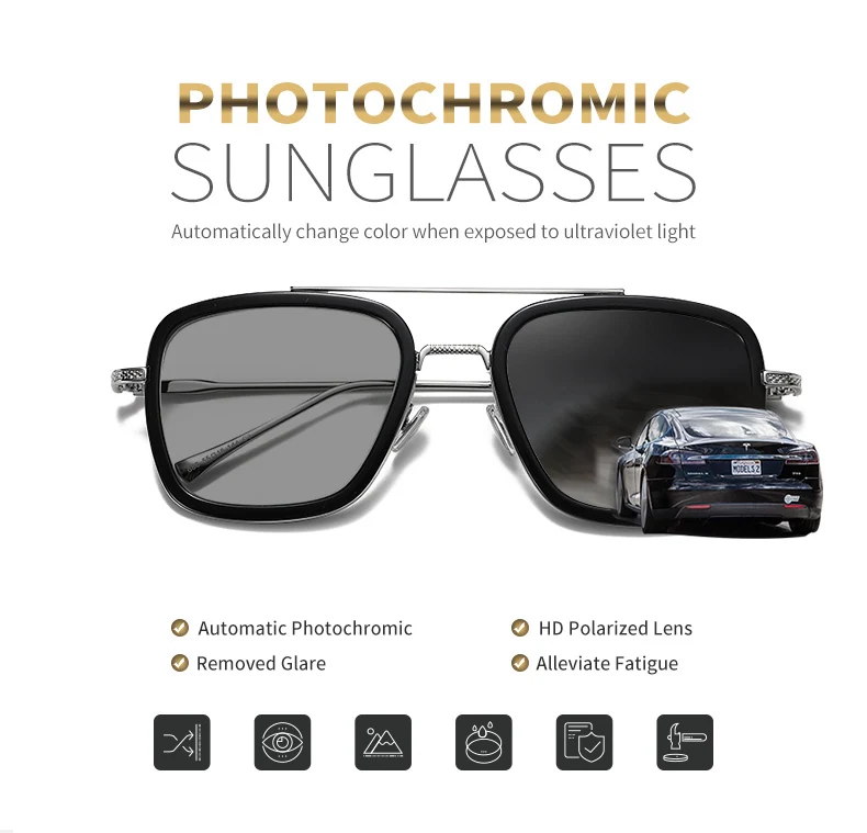 Солнцезащитные очки Tony Stark квадратные фотохромные поляризованные мужские очки в стиле стимпанк очки для вождения