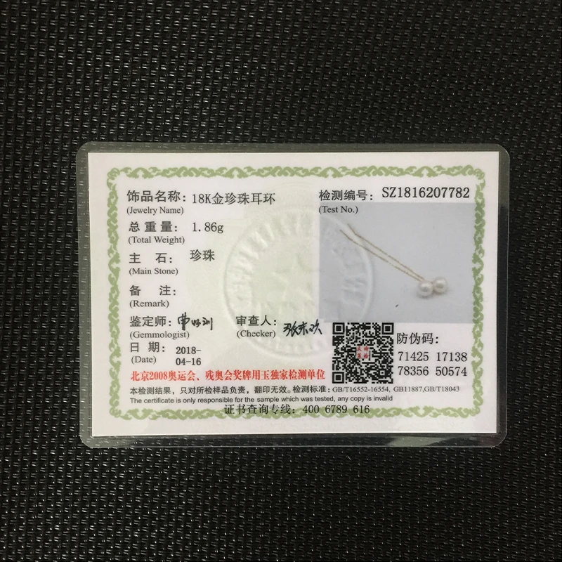 Пожалуйста, обратите внимание: все наши ювелирные изделия имеют стандарт NGTC CCGTC с сертификатом идентификации, но посылка доставки не включает сертификат идентификации, если вам нужен NGTC или CCGTCИдентификационный сертификат, пожалуйста, добавьте 5 долл. США/шт. для этого, это будет оплачено в Национальный центр тестирования драгоценных камней. Спасибо. Ниже показаны ceretificate для клиента.