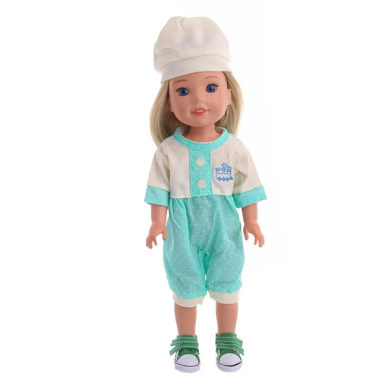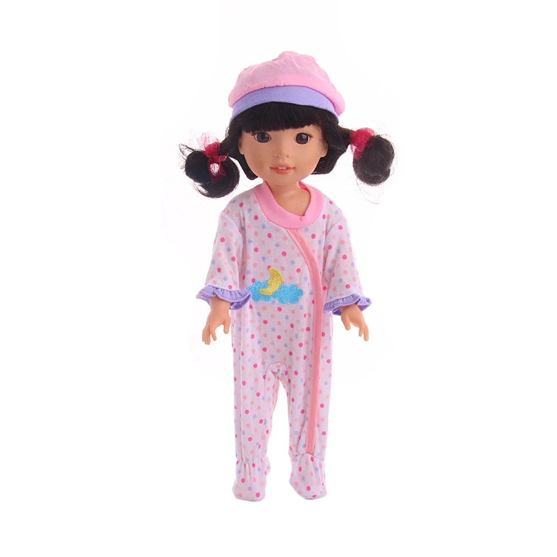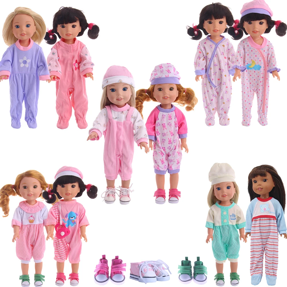 Одежда для кукол, Хлопковая пижама с принтом, комбинезон, шляпа, парусиновая обувь для 14,5 дюймовых американских кукол, Wellie Wishers, аксессуары, игрушка для девочек