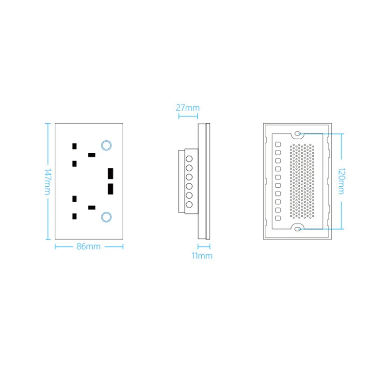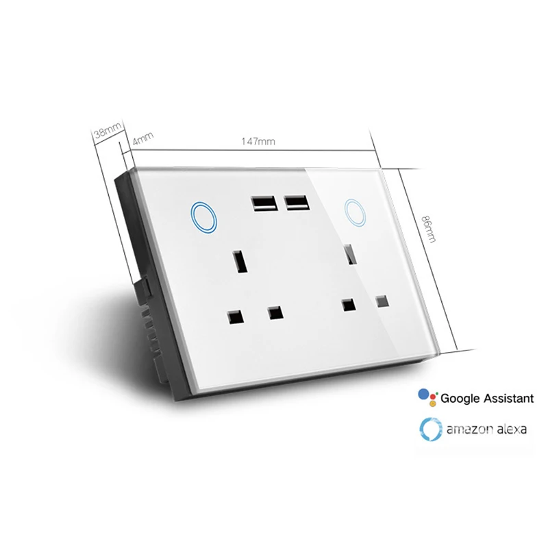 Стандарт Великобритании WIFI Смарт USB розетка, 15A TUYA контроль закаленное стекло панель WiFi двойной USB розетка, 147*86 мм