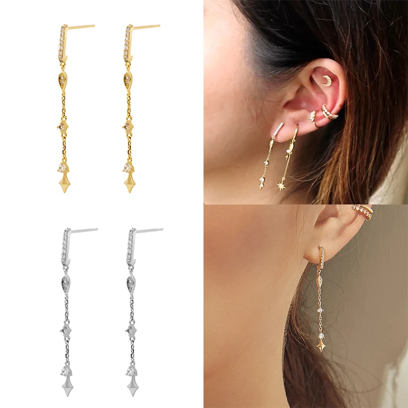 BOAKO 925 стерлингового серебра Starburst нити серьги CZ звезда дли...