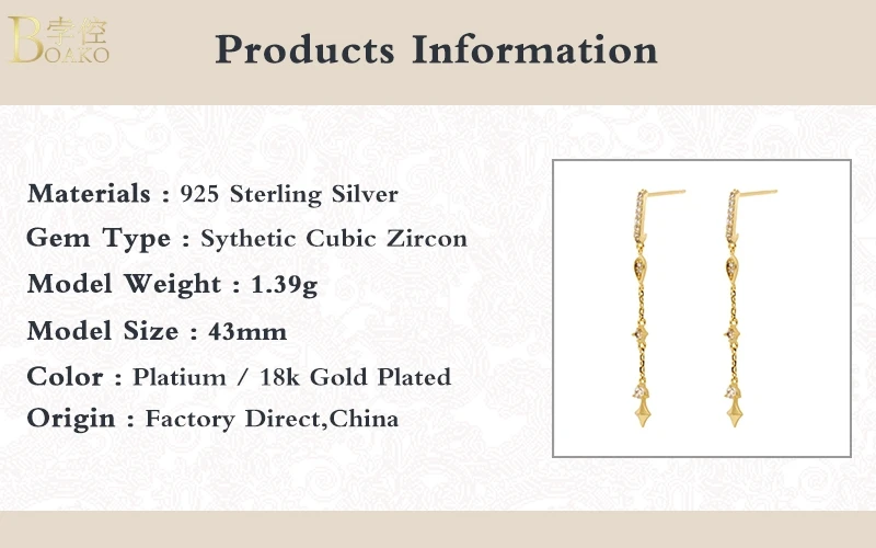 BOAKO кисточкой циркон 2020 тренд серьги серебро 925 ювелирные серьги болтаются девушка серьги пирсинг серьги быстрая мода ухо манжеты #127