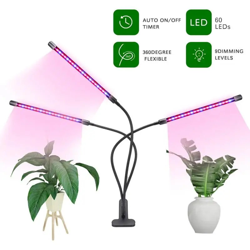 -Искусственный естественный солнечный светильник: 40/60/80 светодиодов с 3 цветовыми режимами (красный: 660нм, синий: 460нм и смешанный светильник) и до 9 регулируемых яркости от 20% до 100%, который эффективно имитирует естественный солнечный светильник для создания идеальной среды для комнатных растений.