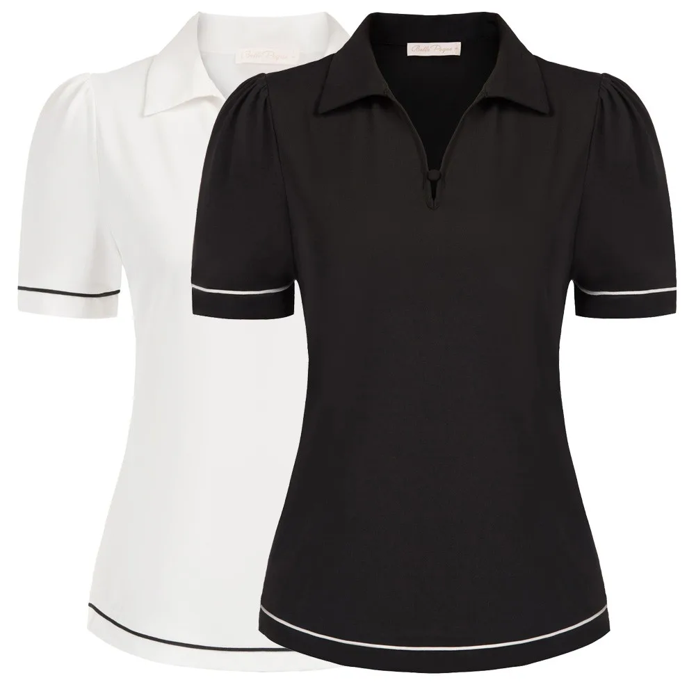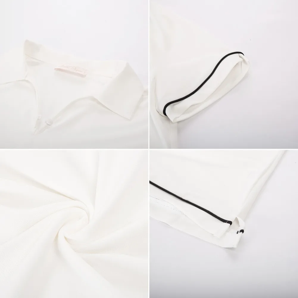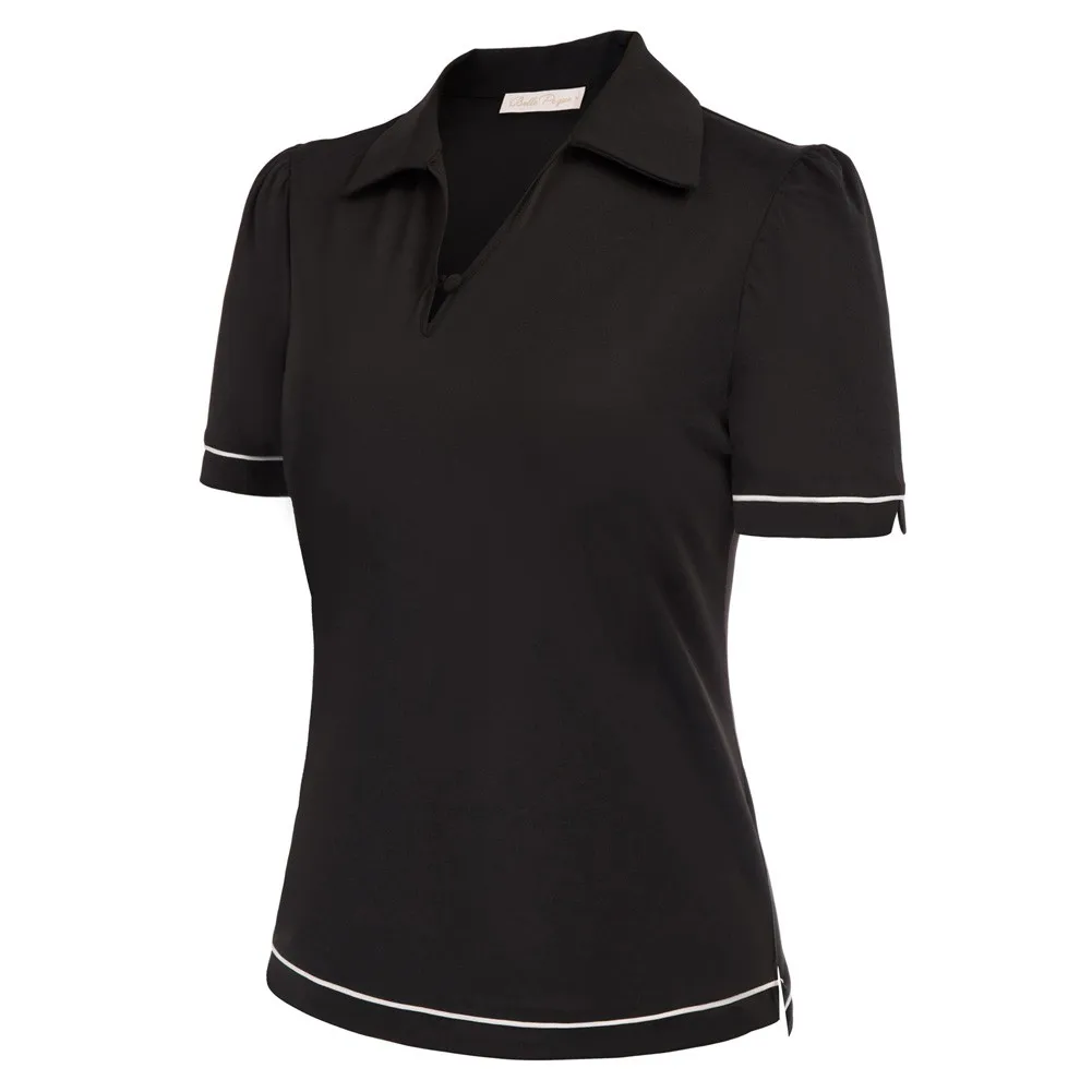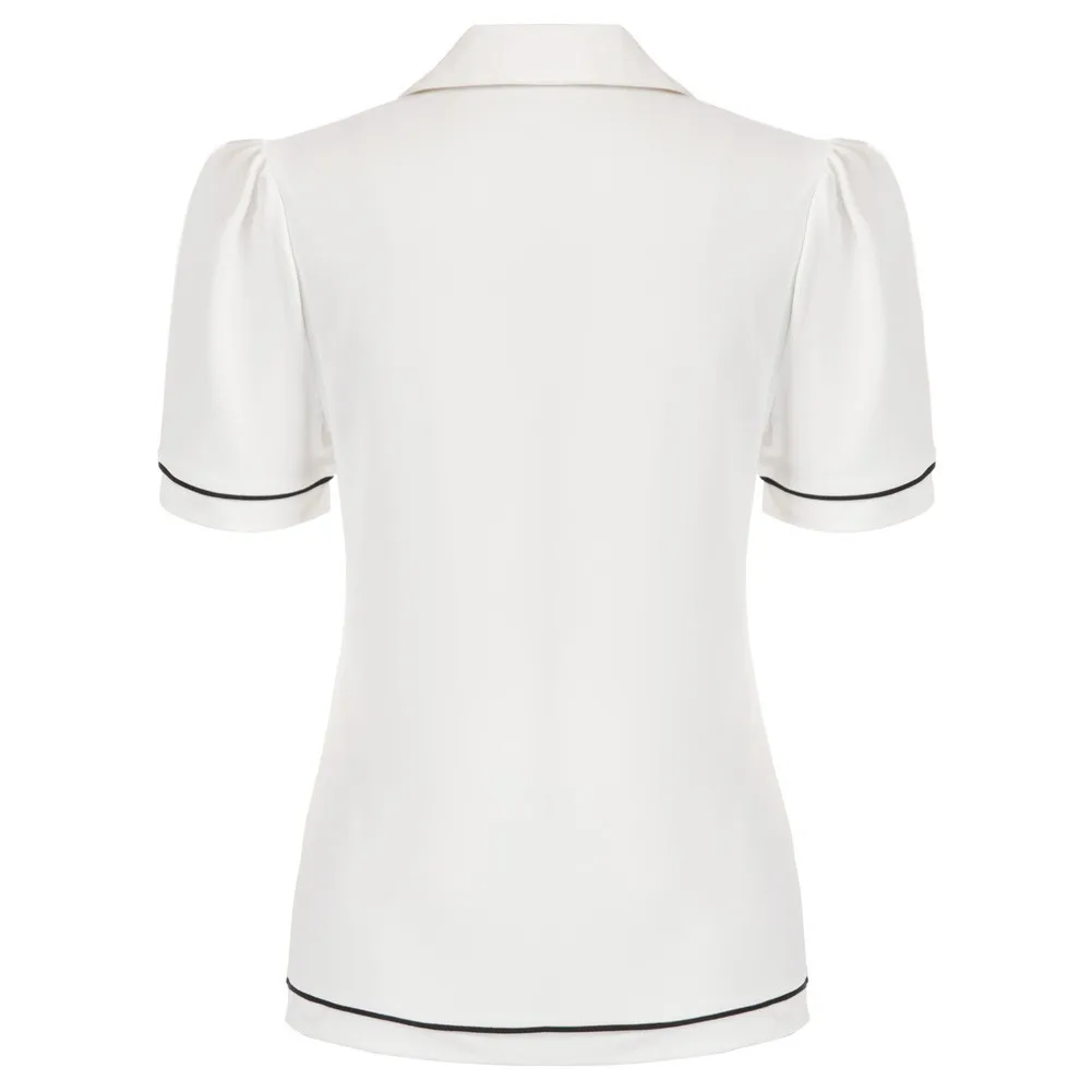 Женская рубашка с отложным воротником, коротким рукавом, V-образным вырезом