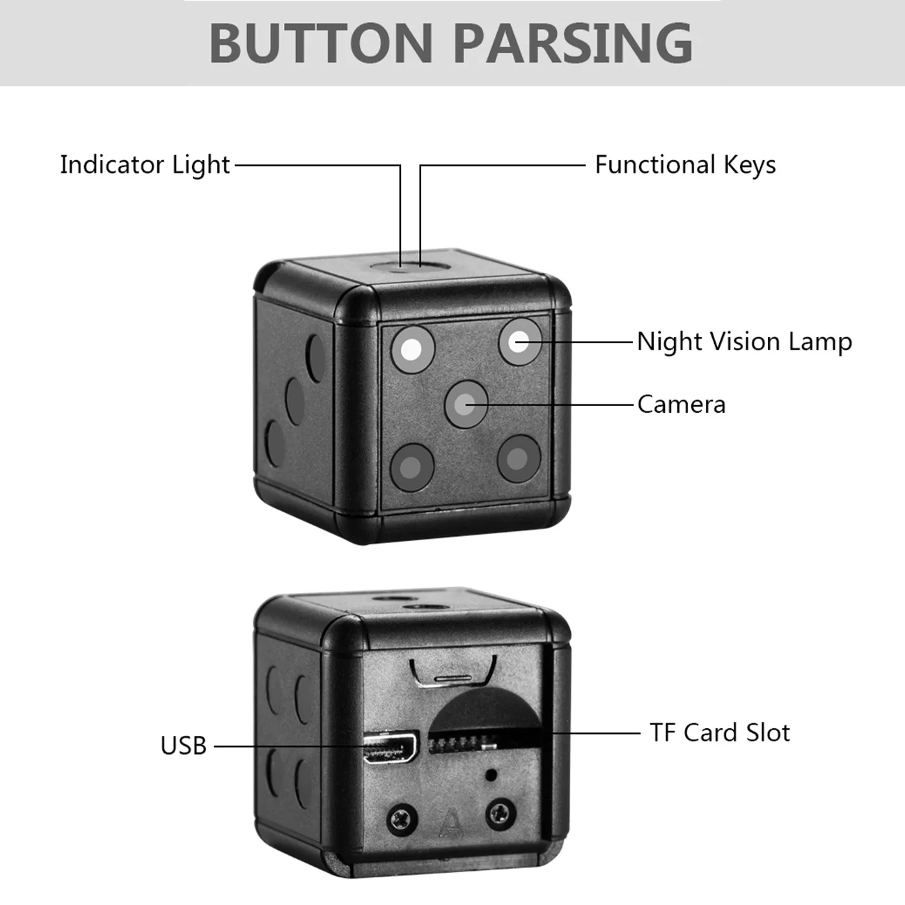 Характеристика: 1. Высокое качество изображения HD FULL HD 1080P/720P DV камера 2. Компактный дизайн, портативный, легко справляется с многоугольной установкой, без подключения и без проводки, свободное размещение 3. Встроенный светильник высокой четкости, не светильник ночного видения, ночная запись также хорошо видна, не светильник и не звук, безопаснее 4. Высокоскоростной интерфейс USB 2,0 5. T-флэш-карта, которая может поддерживать до 32 г (не входит в комплект) 7. Встроенный литиевый аккумулятор 200 мАч, непрерывная запись видео до 100 минут 8. Система поддержки: для Windows ME / 2000 / XP / 2003 / Vista, для Mac OS, для Linux