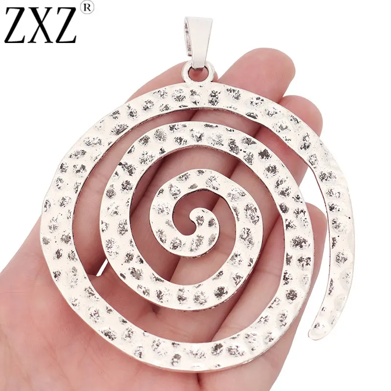 ZXZ 2 шт. тибетский серебряный Большой молотковый вихревой спиральный Шарм Подвески для ожерелья ювелирные изделия Аксессуары для изготовления 98x80 мм