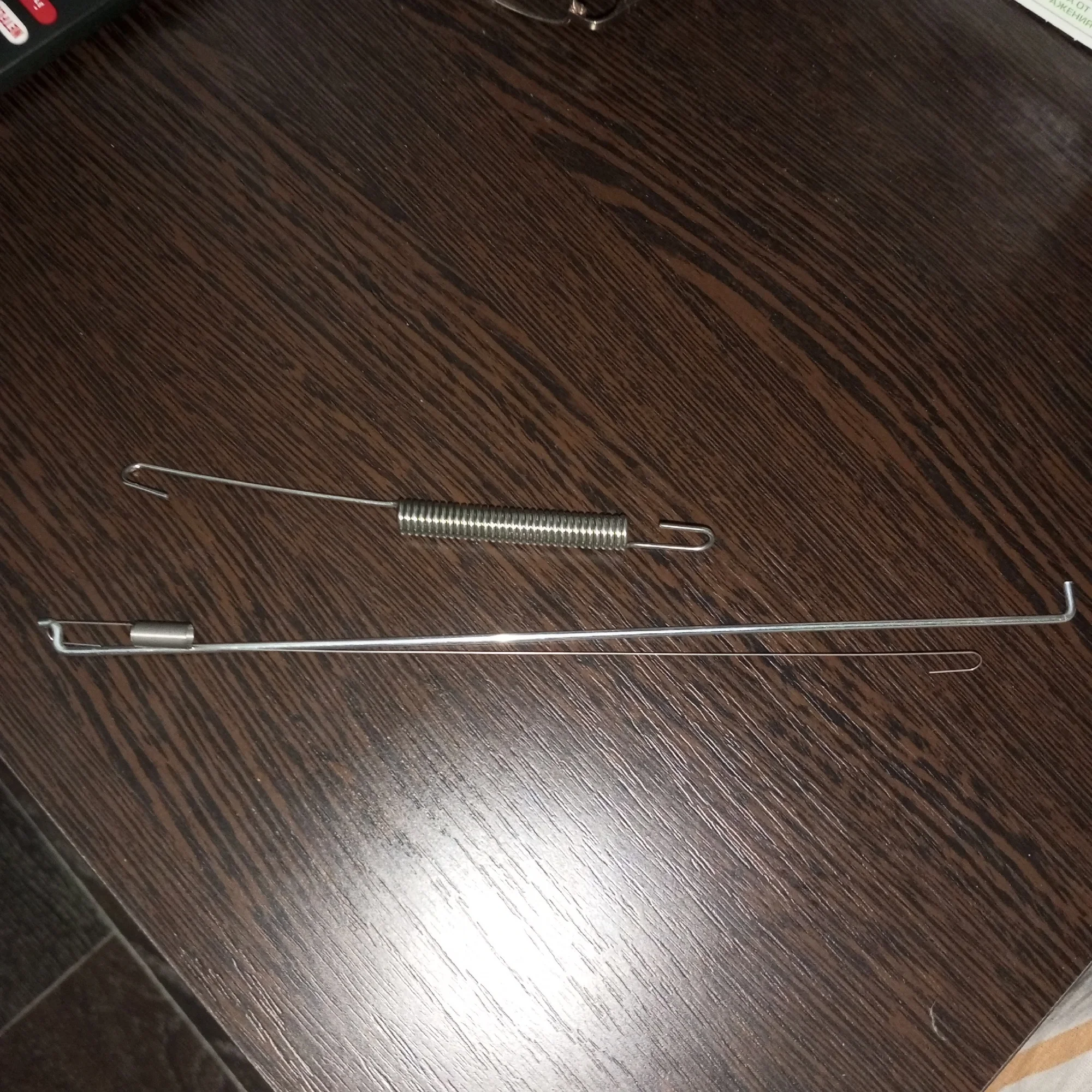 Тяги в комплекте не было. Тонкая пружина погнулась из за плохой упаковки.