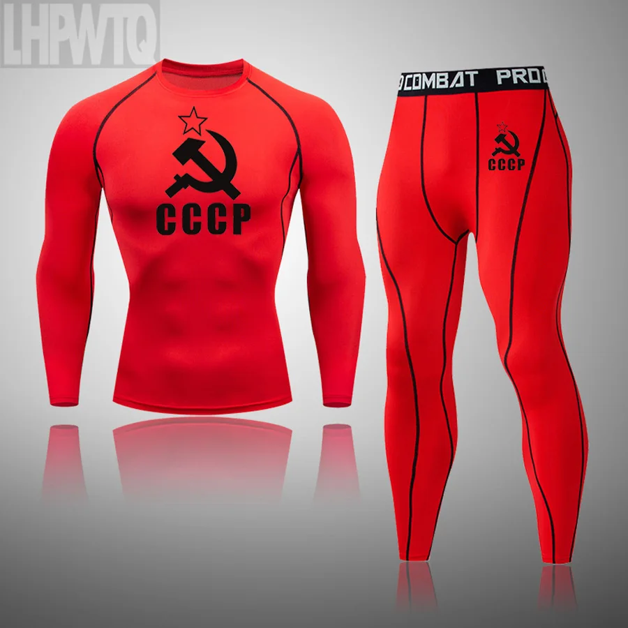 Комплект термобелья CCCP, мужская спортивная одежда, тренировочные теплые базовые компрессионные колготки, костюм для бега, мужской тренажерный зал