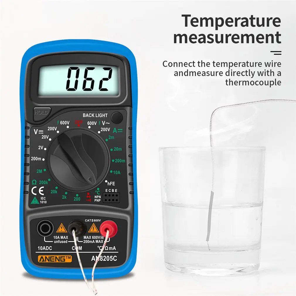 Цифровой мультиметр ANENG AN8205C, профессиональный амперметр переменногопостоянного тока, вольт, Омметр, мультиметр с термопарой, ЖК-подсветка