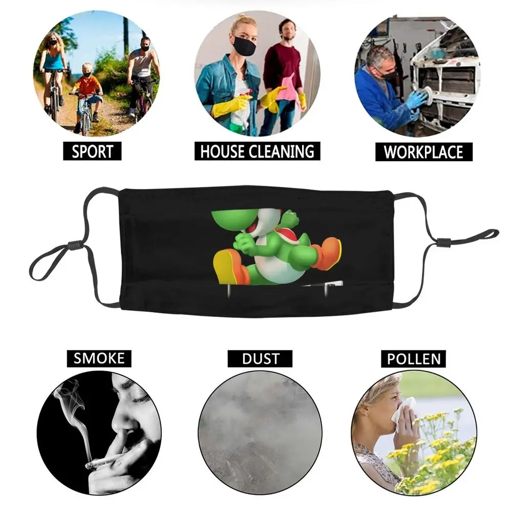 Маски с узором Yoshi, многоразовые маски, противотуманные и пылезащитные маски, защитные маски с фильтрами, респираторные маски