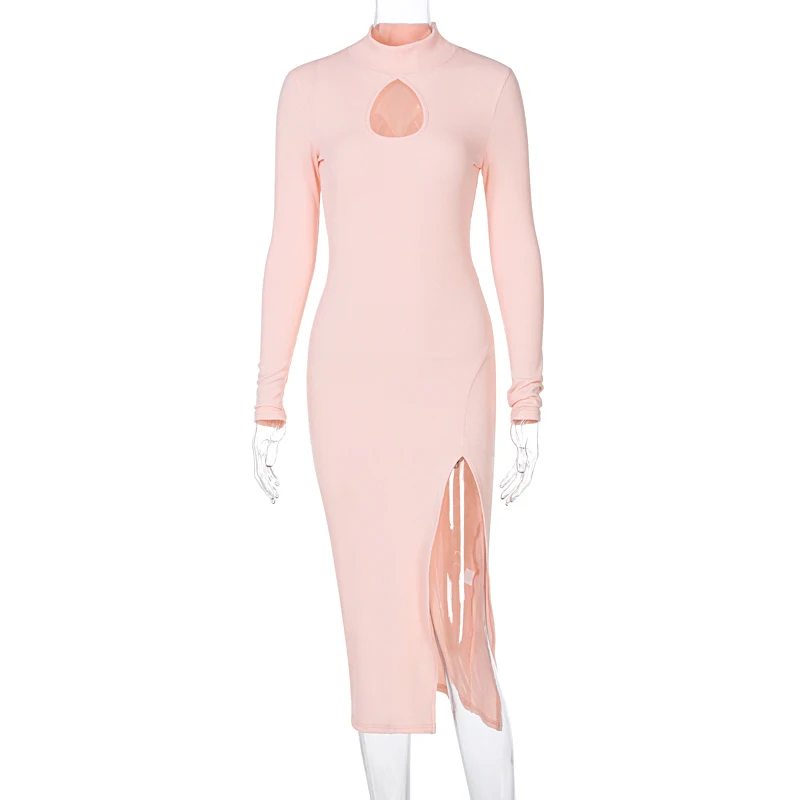 Платье-макси Hugcitar женское, однотонное, с длинным рукавом, в рубчик, с разрезом по бокам, элегантная одежда, весна-лето 2021
