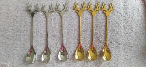 Креативная ложка из нержавеющей стали в форме рога, десертная кофейная ложка, ложка, Рождественские оленьи рога, чайная миниатюрная ложки для помешивания