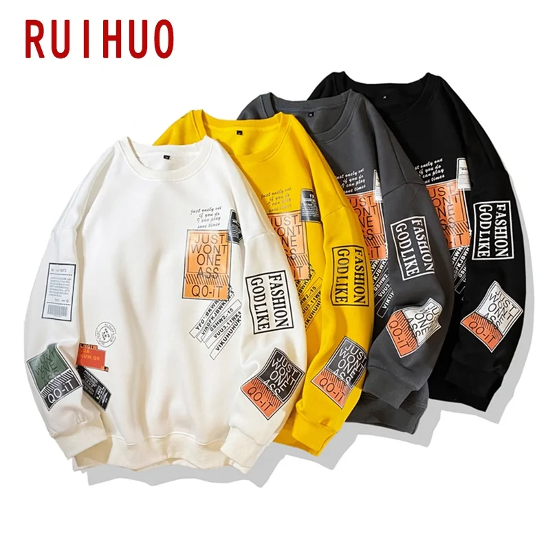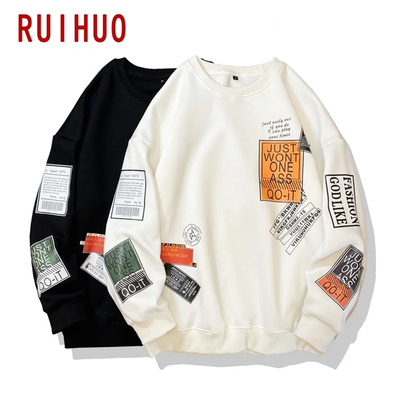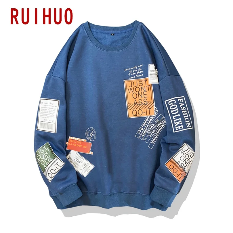 Повседневная Толстовка RUIHUO, Мужская одежда, уличная одежда в стиле Харадзюку, Мужская винтажная толстовка, спортивный костюм, мужские свитшоты 5XL, весна 2022