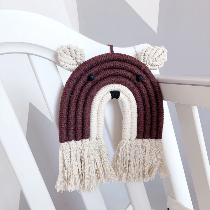 Скандинавская ручная работа гобелен из макраме хлопчатобумажная веревка Радужный медведь настенная Подвеска для детской комнаты украшение для детской комнаты дома Orname