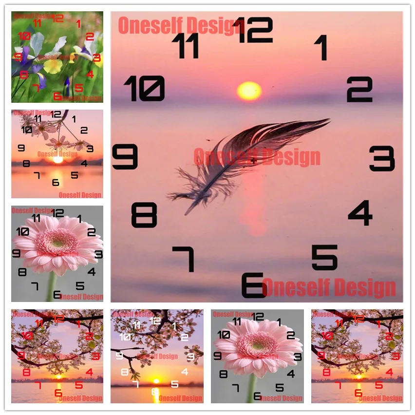 Набор для алмазной живописи, картина с часами, цветок, 5d Алмазная ...