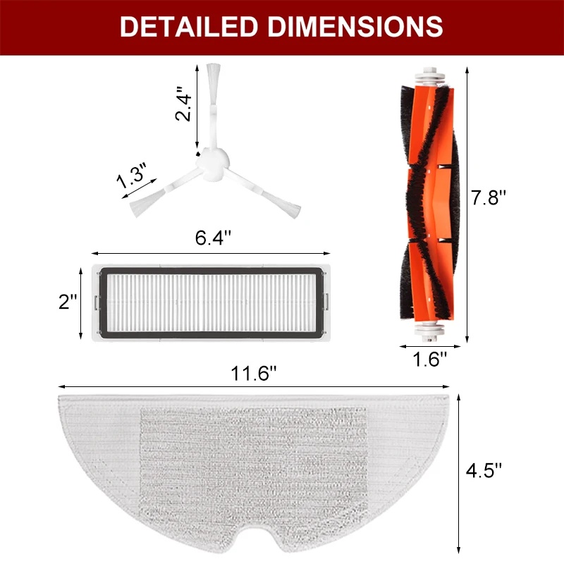 Посылка входит:Тип 1: 8 шт./компл.1 роликовая щетка2 x HEPA-фильтра2 боковых щетки2 шт. тряпка для швабры1 расческаТип 2: 14 шт./компл.2 x роликовая щетка4 x HEPA-фильтр4 боковых щетки2 шт. тряпка для швабры1 x Чистящая Щетка1 расческаТип 3: 20 шт./компл.2 x роликовая щетка4 x HEPA-фильтр4 боковых щетки8 шт. тряпка для швабры1 x Чистящая Щетка1 расческаТип 4: 20 шт./компл.2 x роликовая щетка4 x HEPA-фильтр6 боковых щеток6 шт. тряпка для швабры1 x Чистящая Щетка1 расческаОсобенности:1. Чистые щетки поддерживают работоспособность вашего домашнего робота.2. Боковые щетки легко снимаются и заменяются в рамках обычного ухода.3. Фильтры поддерживают эффективность уборки робота при этом уменьшают попадание пыли, пыльцы и других аллергенов в воздух, которым вы дышите.4. Для достижения наилучших результатов фильтры следует заменять каждые 2-3 месяца.5. Только для использования с роботом Xiaomi MI 1c/STYTJ01ZHM.6. Комплектующие для пылесоса отличаются высоким качеством. Изготовлен из высокопрочных и экологически чистых материалов.7. Аксессуары легко удаляют грязь, пыль и мусор в углах и краях эффективно. Особенно ваши волосы и шерсть вашего питомца.8. Детали аксессуаров долговечны и просты в установке, делают ваш Роботизированный пылесос дольше.Примечание.1. Замеры сделаны вручную, поэтому возможны отклонения на 1-2 см.2. Пожалуйста, поймите, что цвета могут отличаться от отображаемых на дисплее.
