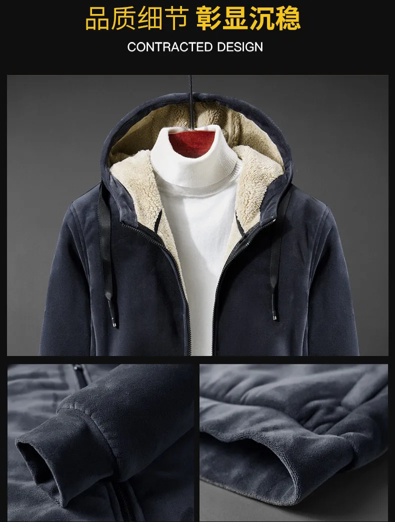 Мужская зимняя флисовая толстовка; Теплая теплоизоляция Черная Толстовка Размеры X-8XL для девочек и мальчиков с застежкой-молнией и анти-кражи серое пальто куртка