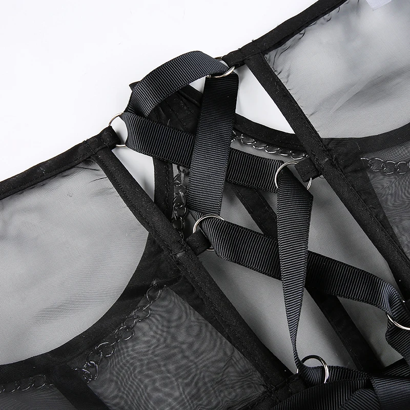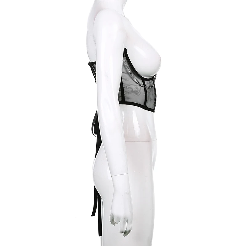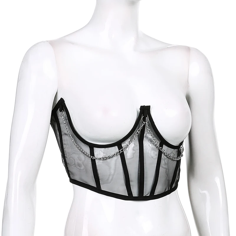 Женский сетчатый укороченный корсет с металлической цепочкой