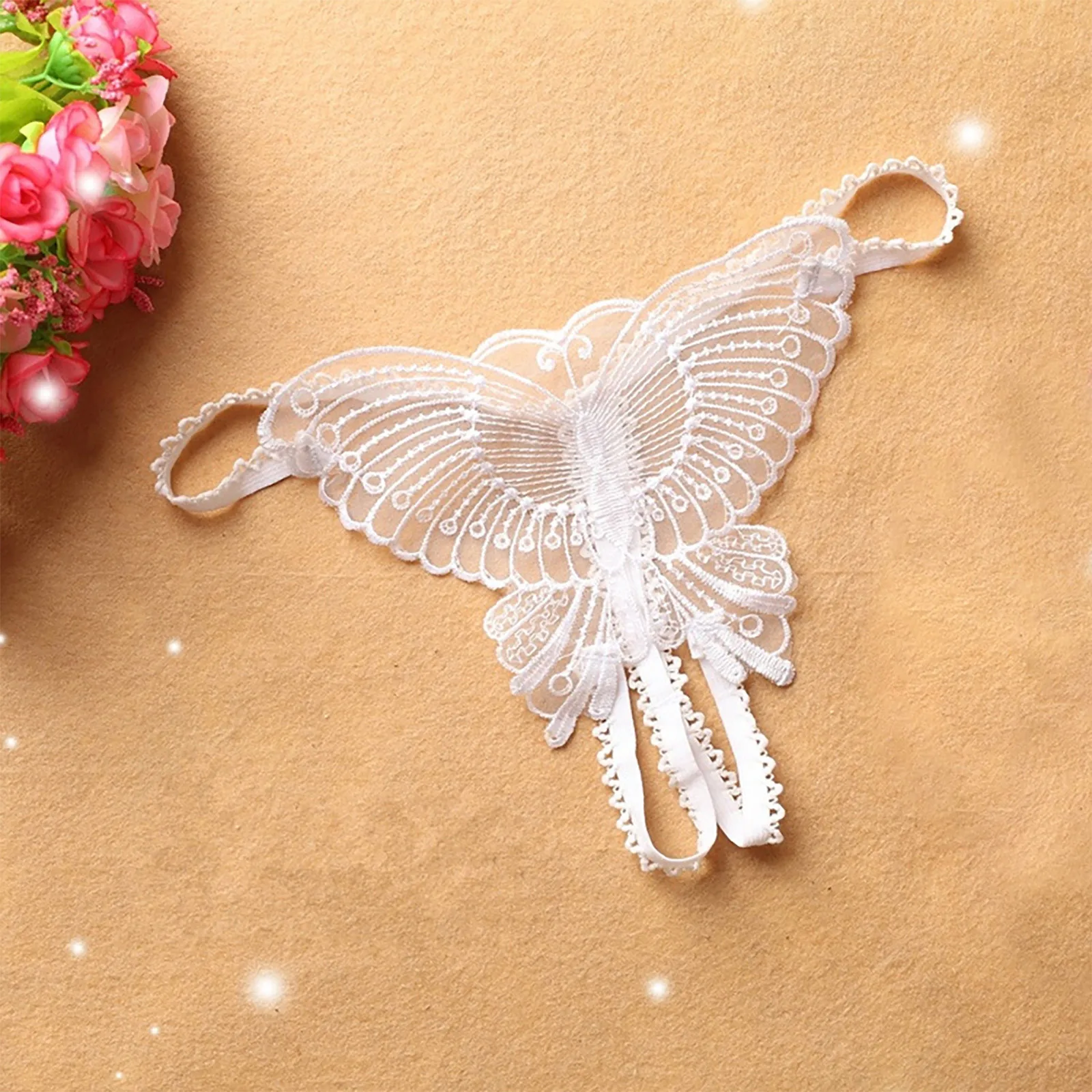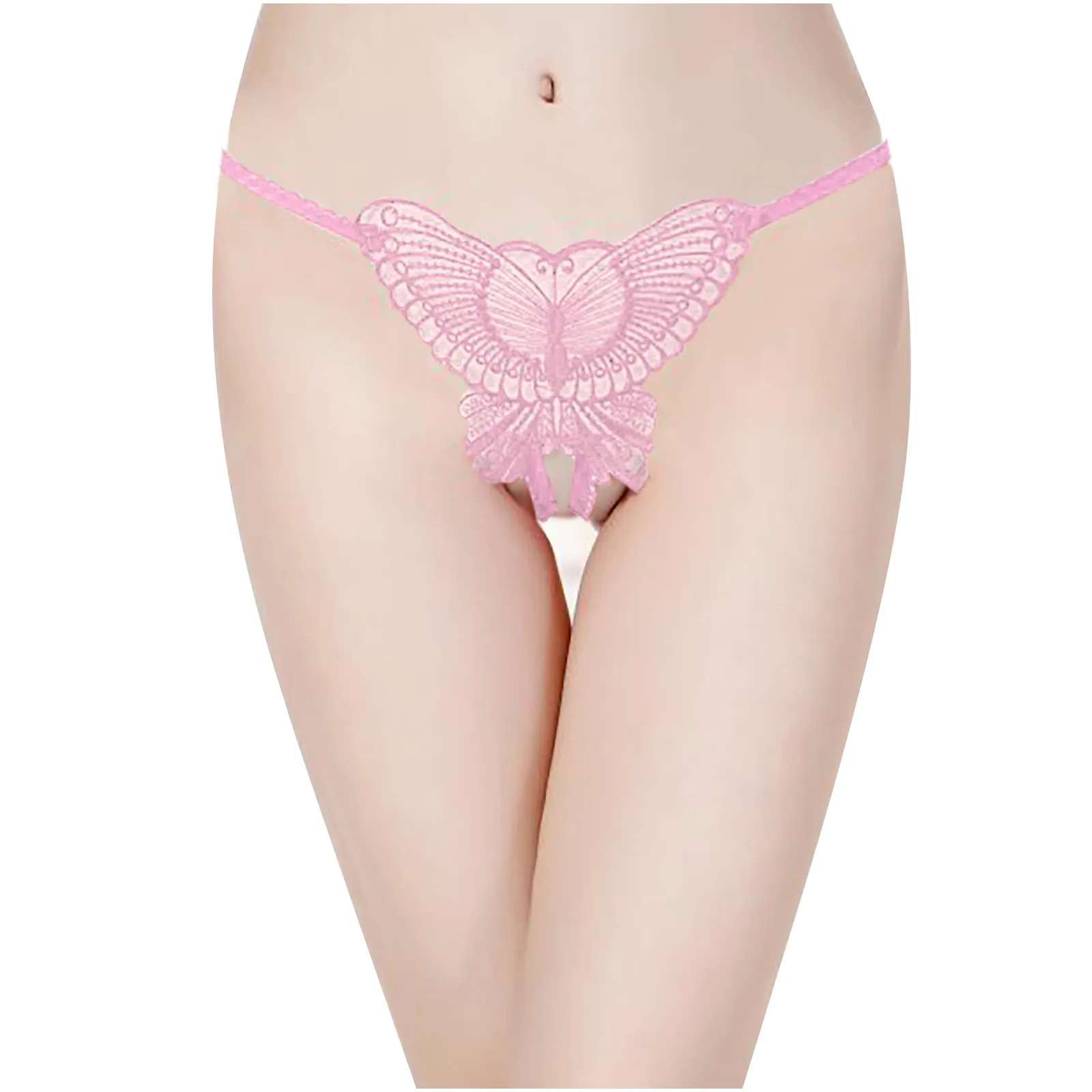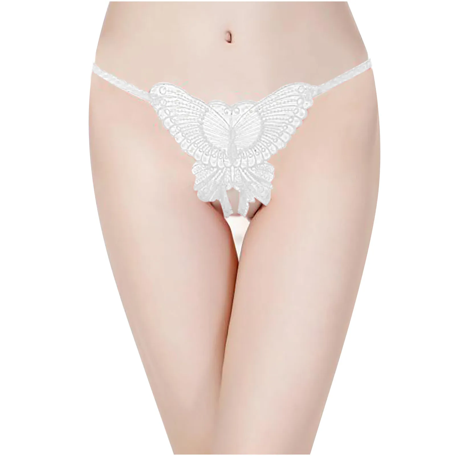 Однотонные кружевные стринги с бабочкой, женские модные прозрачные сетчатые сексуальные трусики с открытой промежностью и низкой талией, нижнее белье для секса