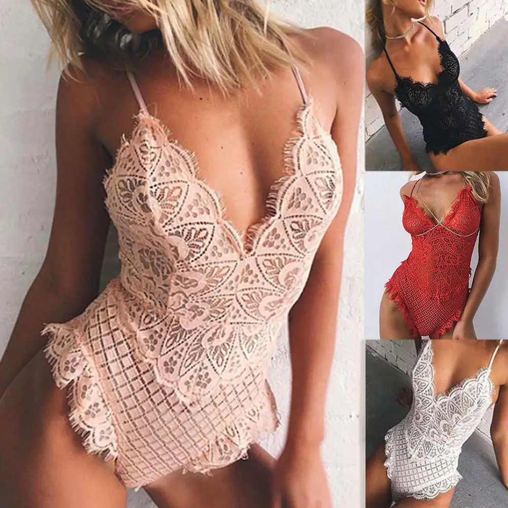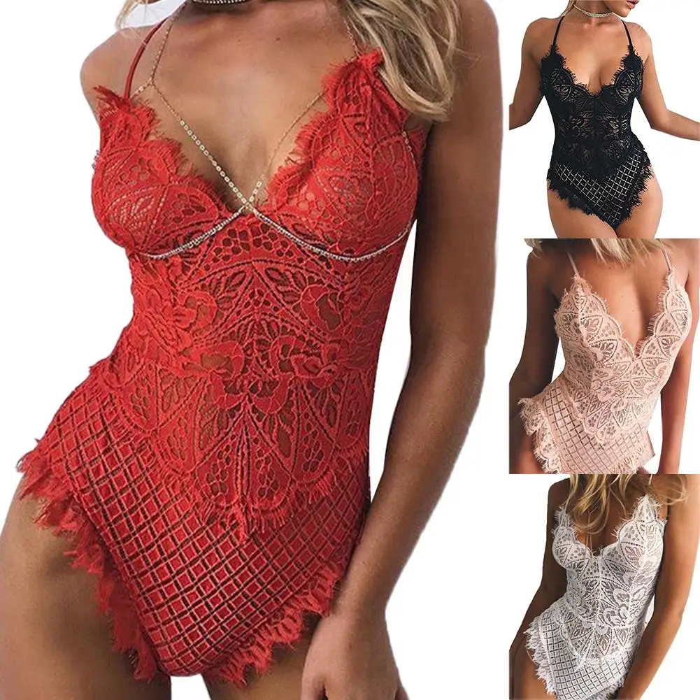 Сексуальное Кружевное боди, женское сексуальное боди с глубоким V-образным вырезом, нижнее белье, женское прозрачное цельное боди, комбинезон, Женское ночное белье