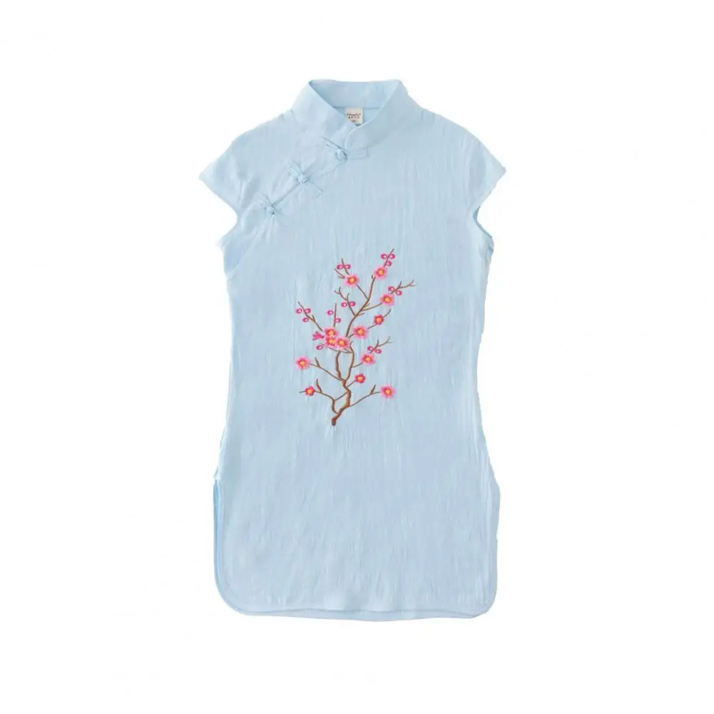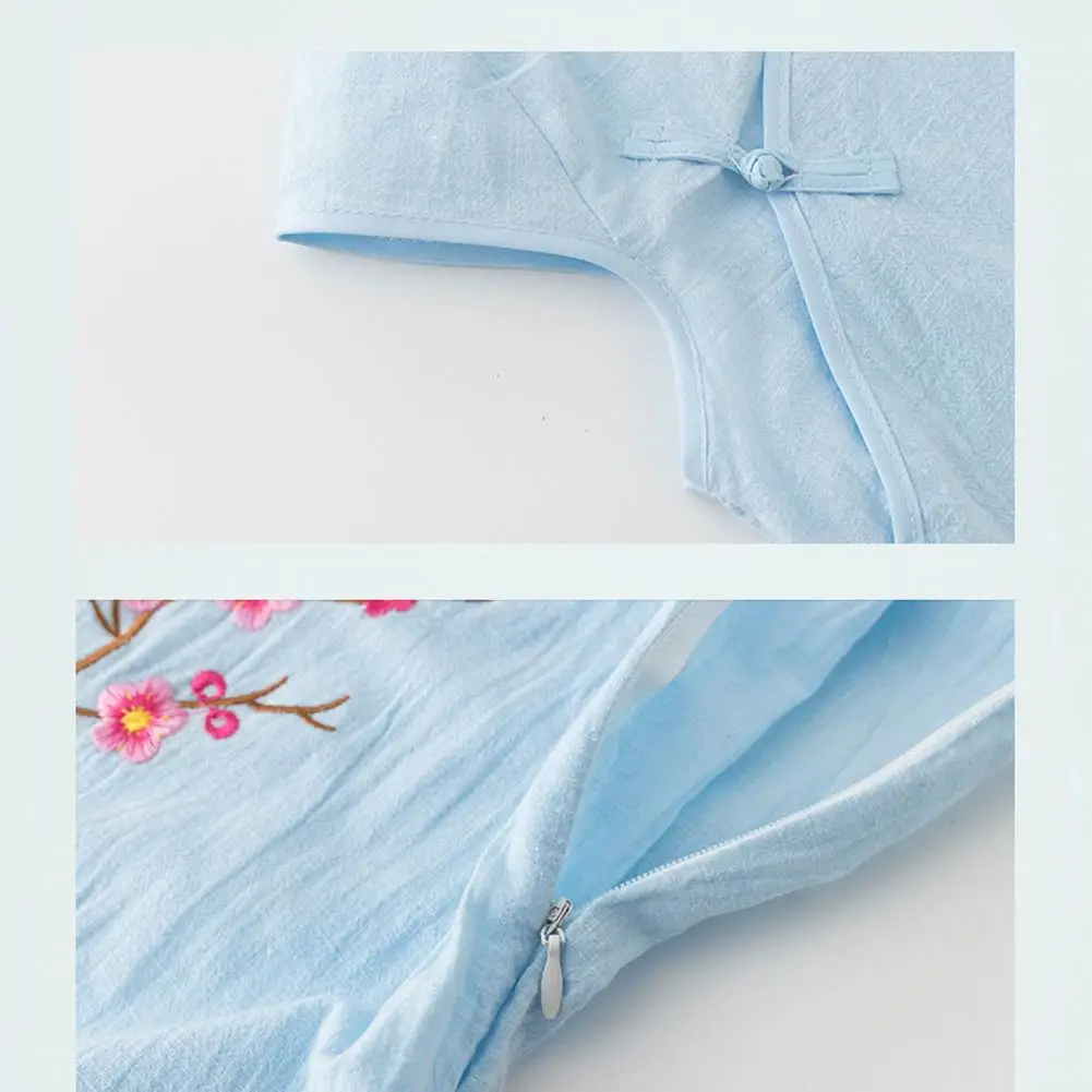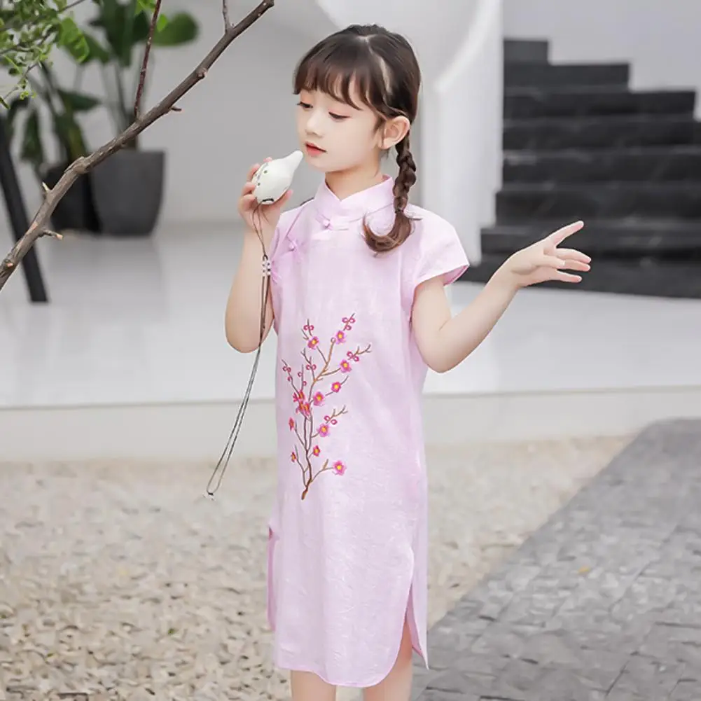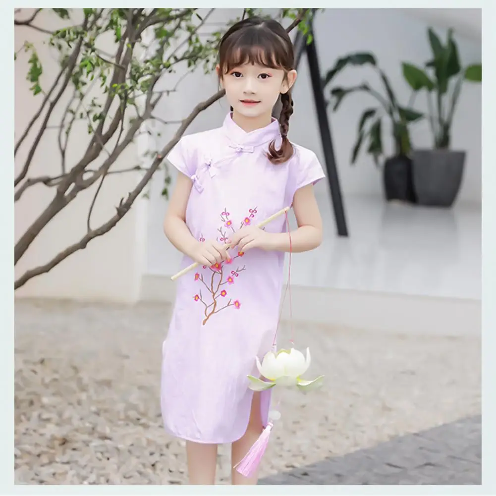 Платье-Ципао с коротким рукавом для девушек, хлопковое платье в китайском стиле с вышивкой для нового года, Хлопковое платье в китайском стиле