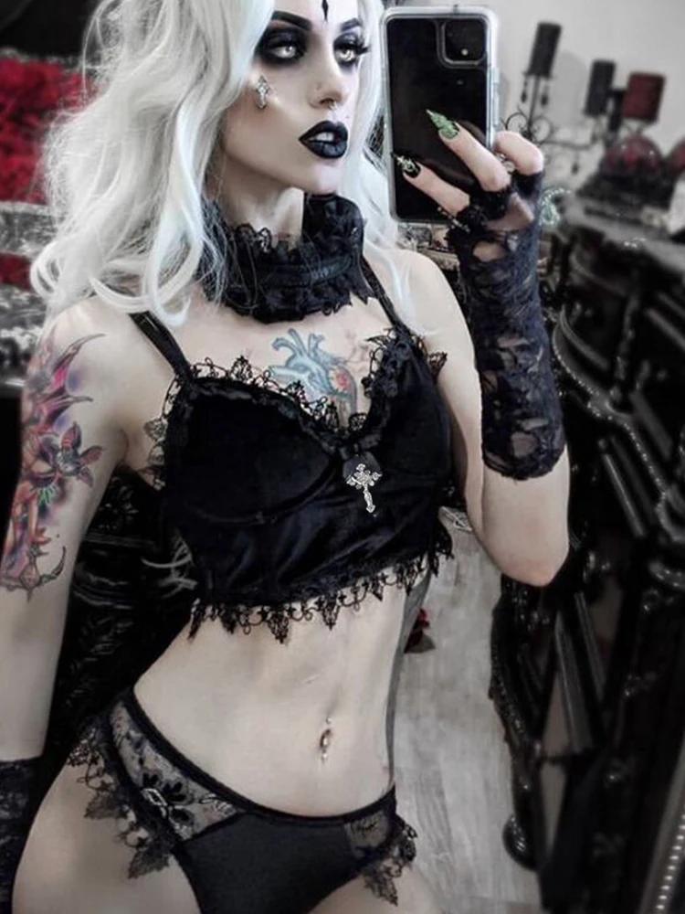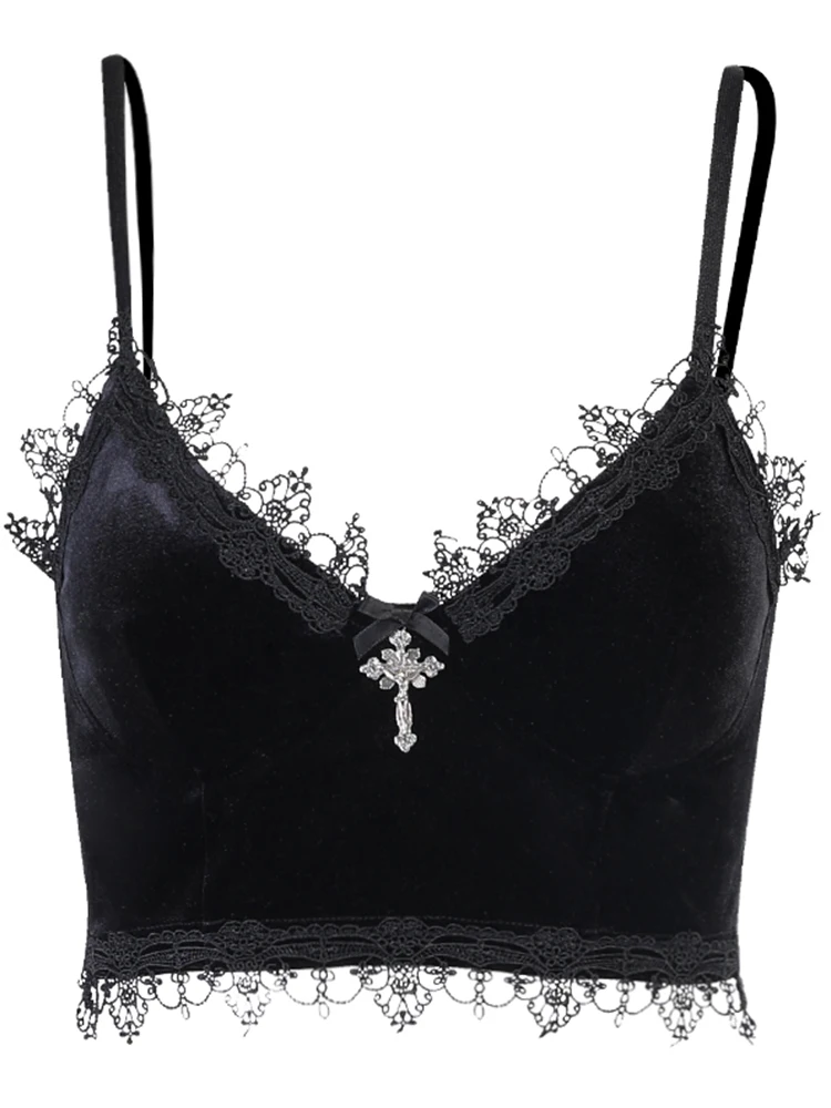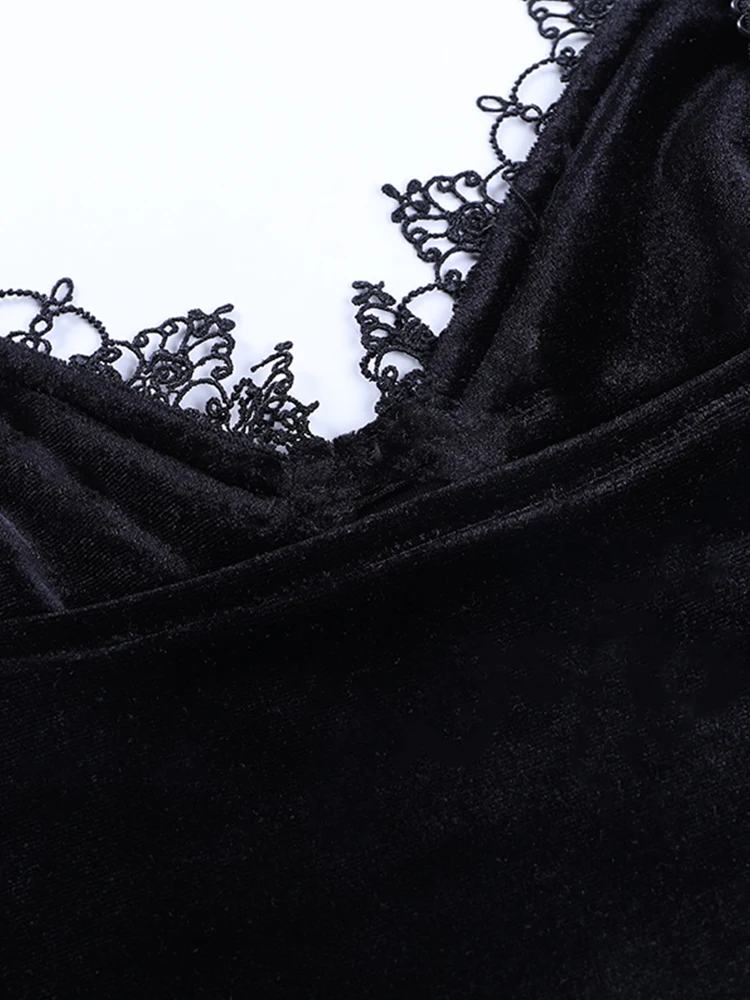 Женский бархатный укороченный топ InsDoit, пикантный кружевной корсет на тонких бретельках в готическом стиле, уличная одежда в стиле панк, Y2K