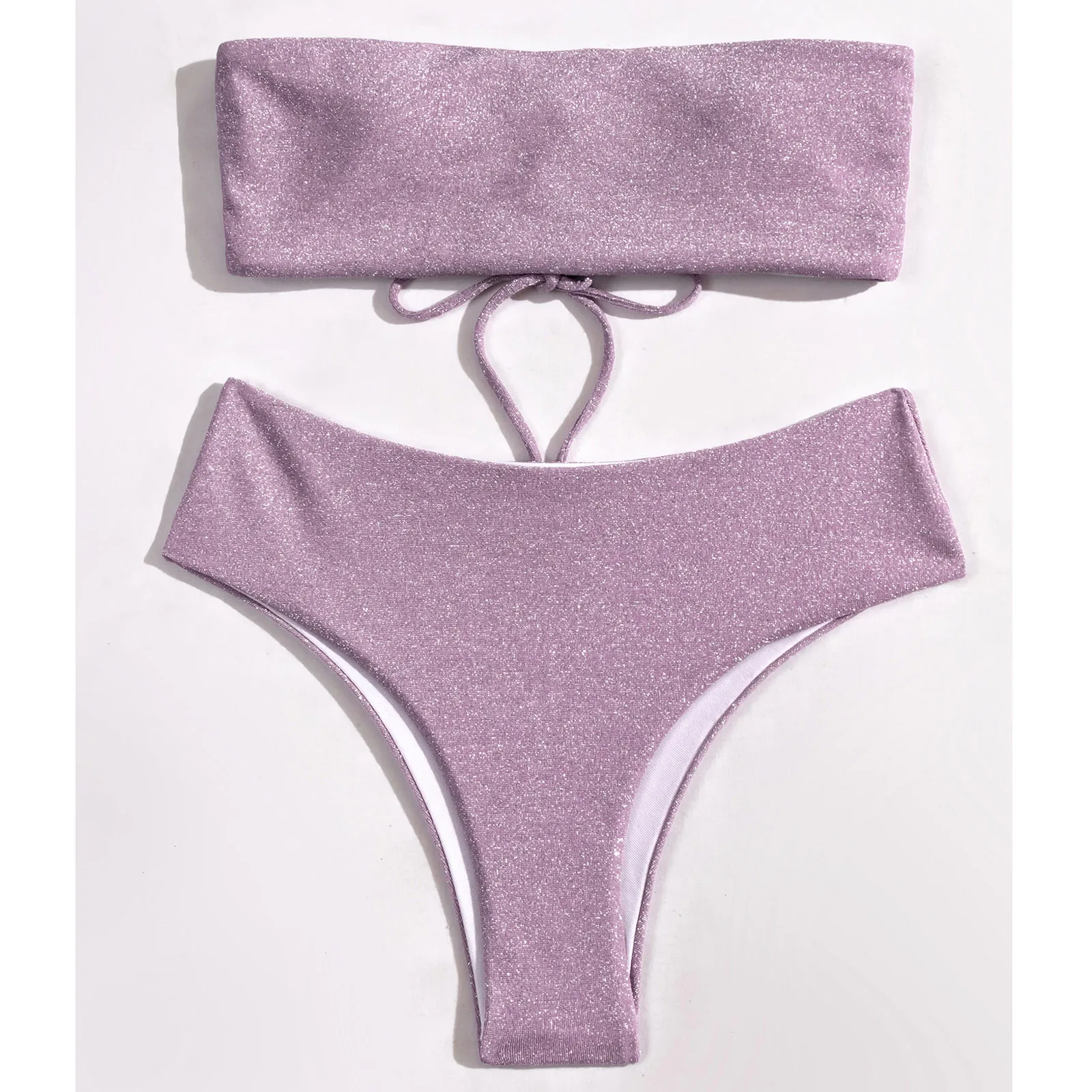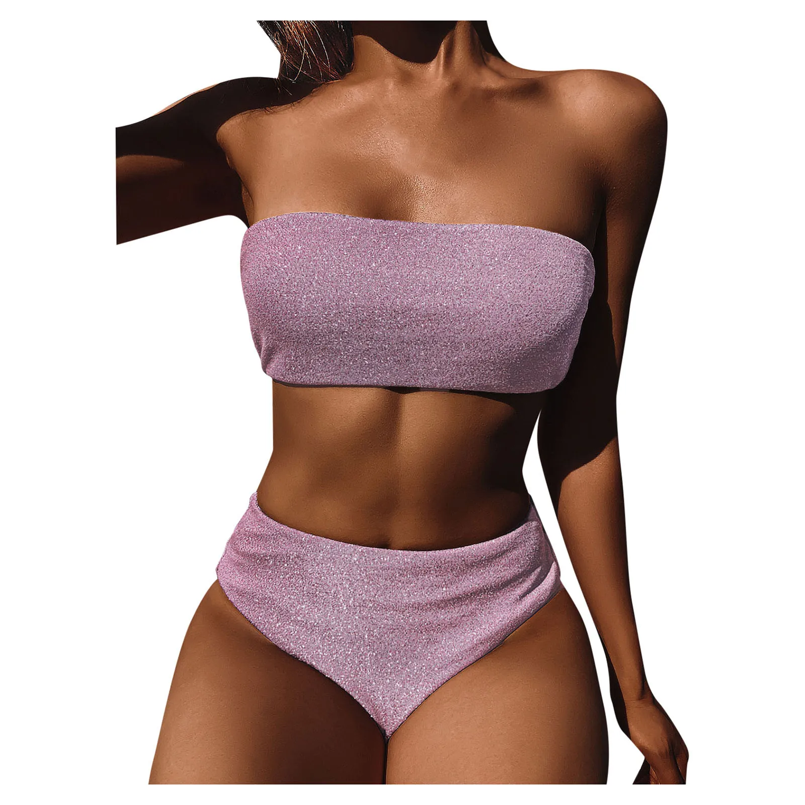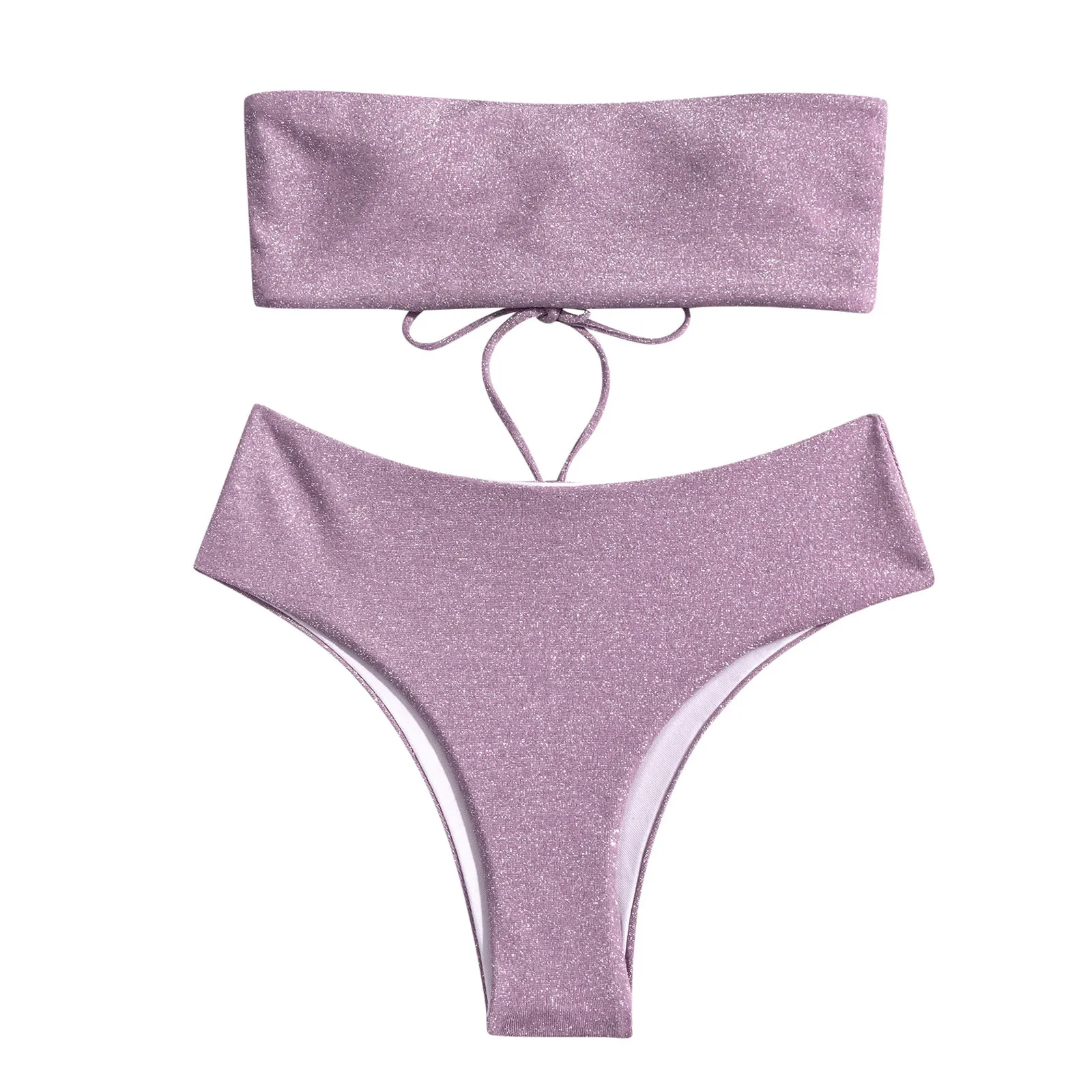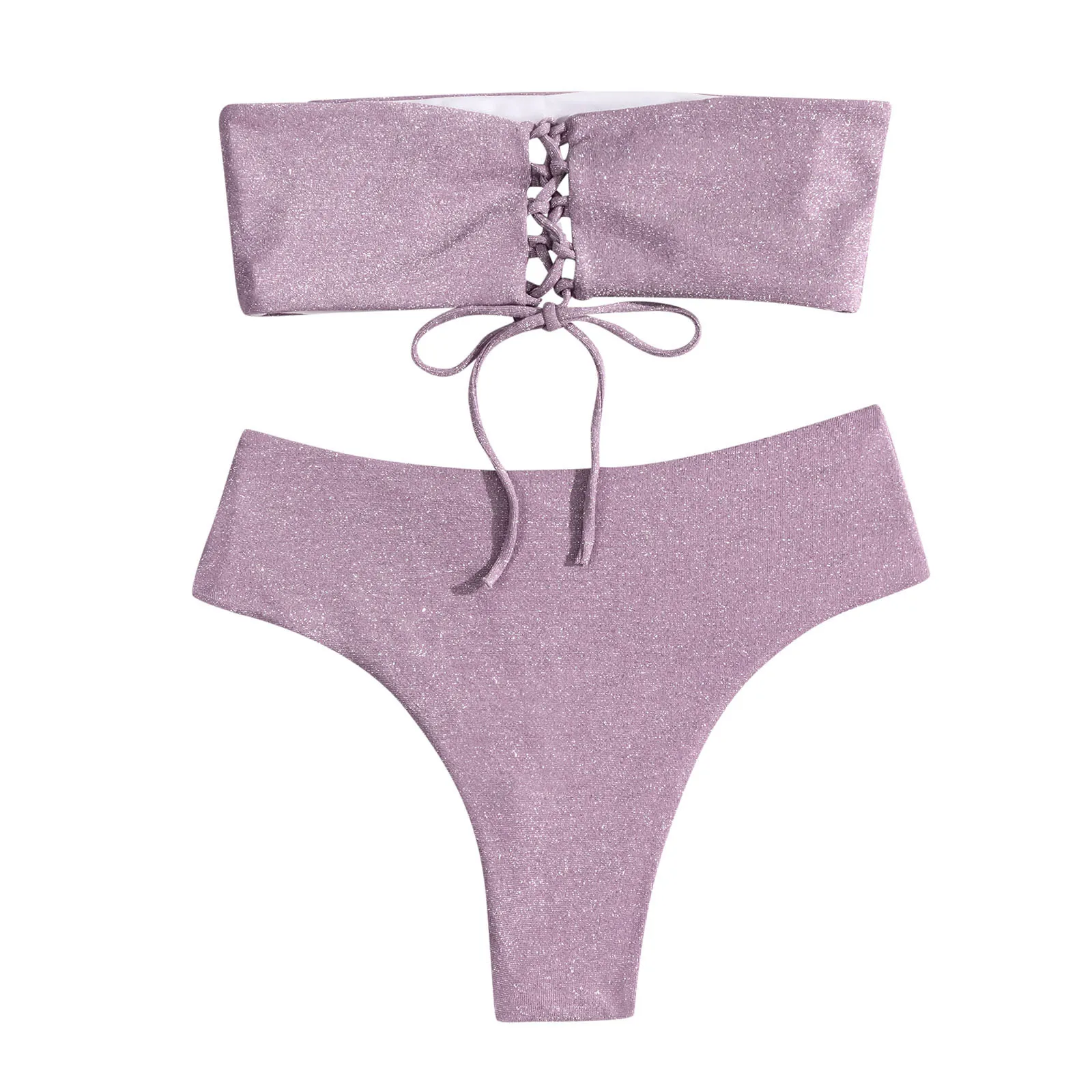Купальник женский блестящий, однотонный, с чашками пуш-ап