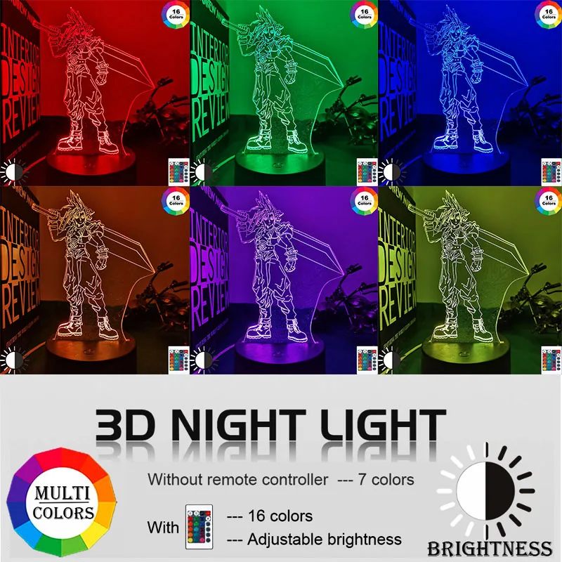 3D светодиодный ночной Светильник облако фигурка Strife цветной ночной Светильник для детей Украшения в спальню светильник USB настольная лампа игры Final Fantasy подарок